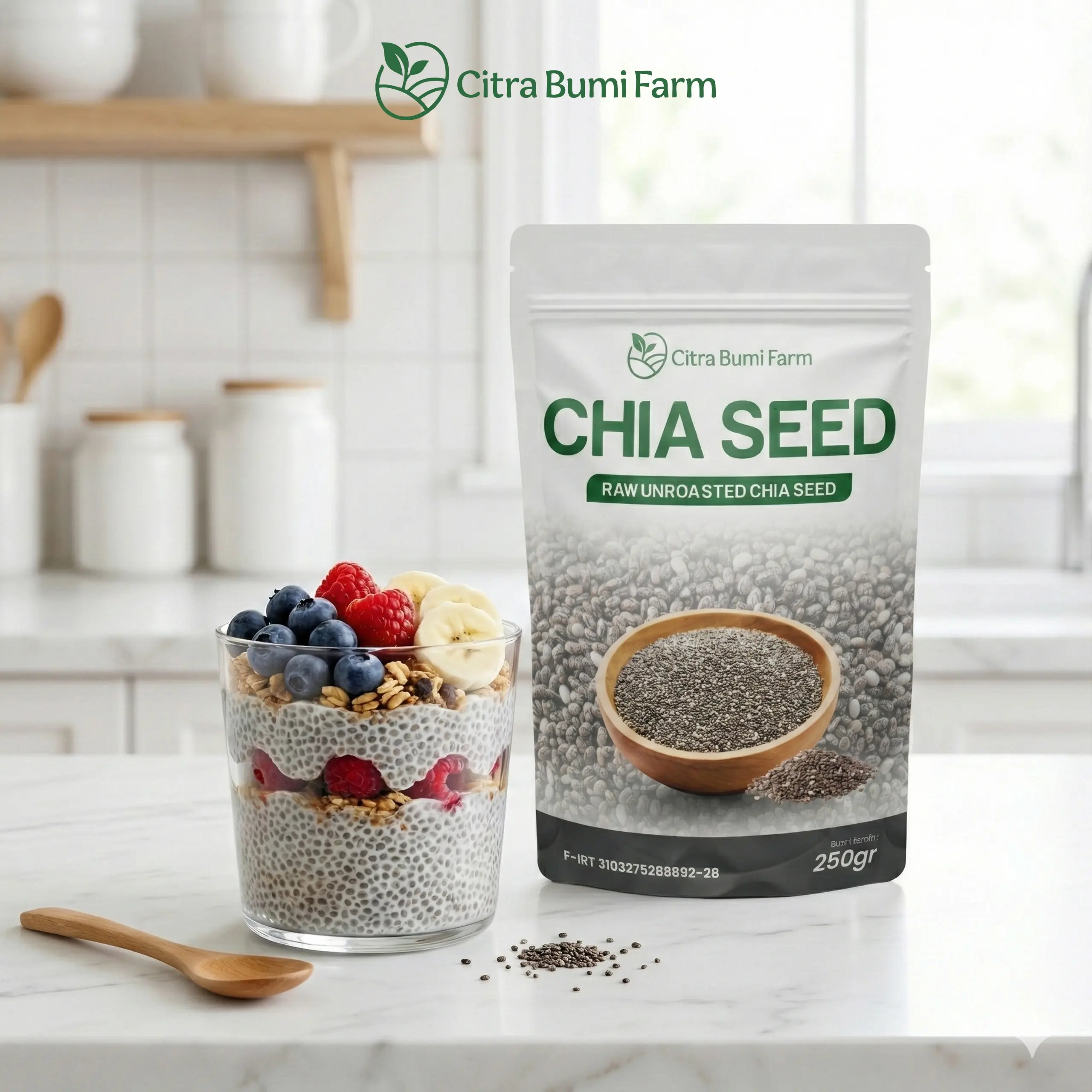 Nikmati manfaat kesehatan dari Biji Chia Organik Superfood berkualitas tinggi. Biji chia atau chia seed dikenal sebagai superfood alami yang kaya nutrisi, tinggi serat, dan bermanfaat untuk mendukung gaya hidup sehat.