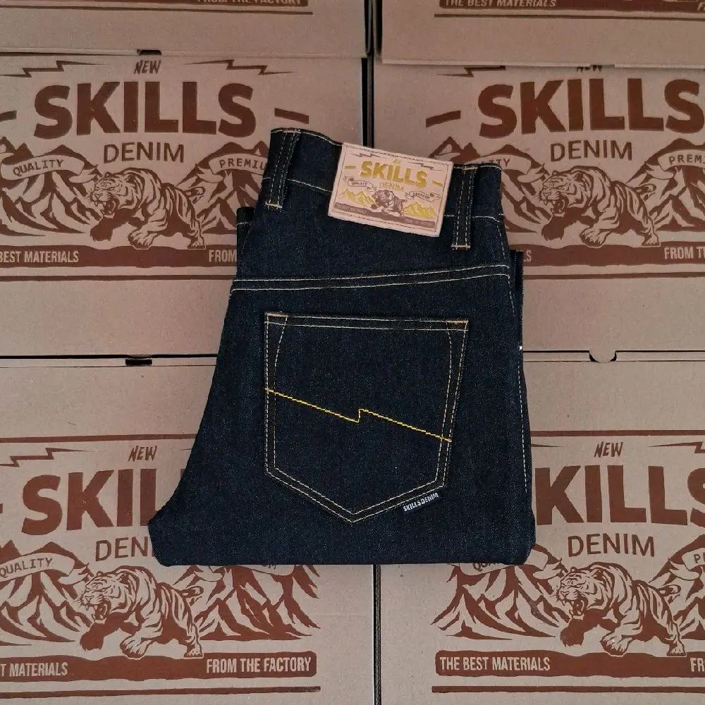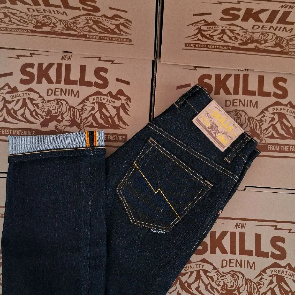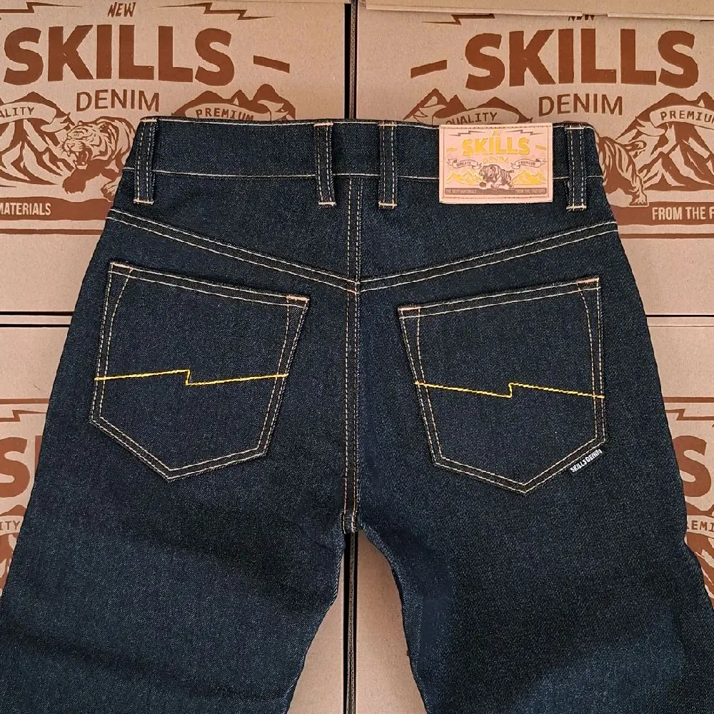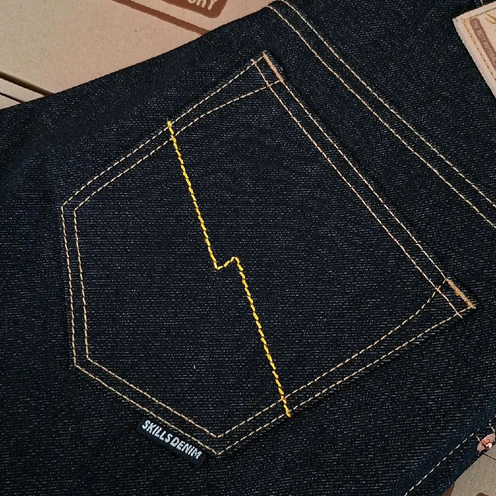 SKILLS DENIM denim black indigo strect13 oz raw jeans