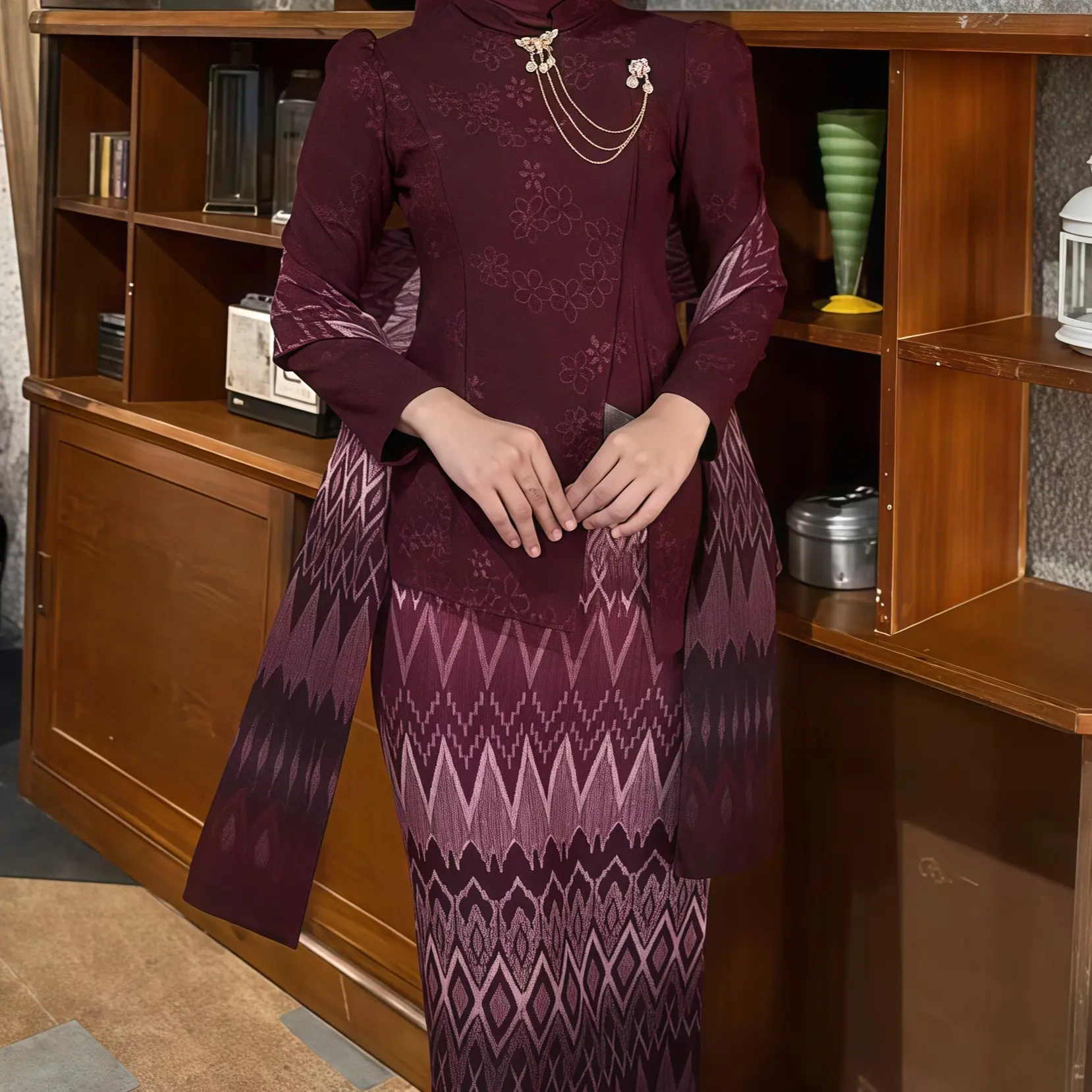Rok+Selendang Mahogany, L