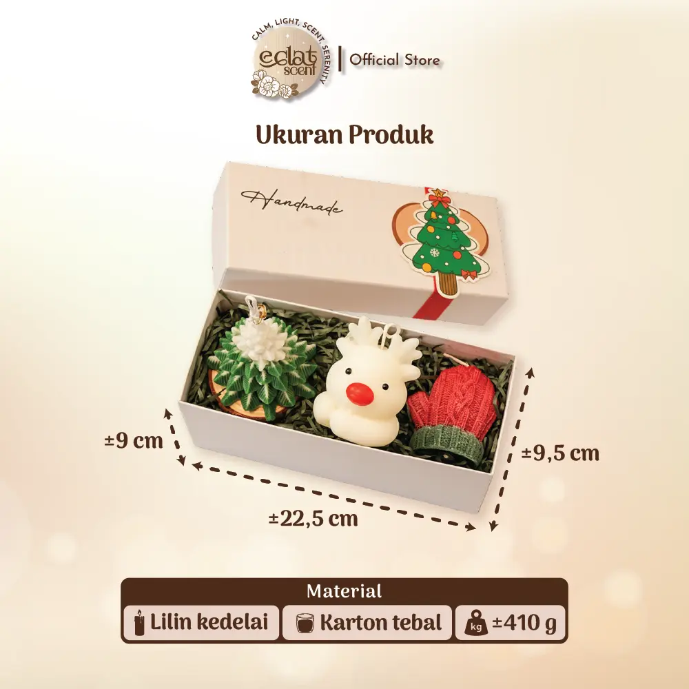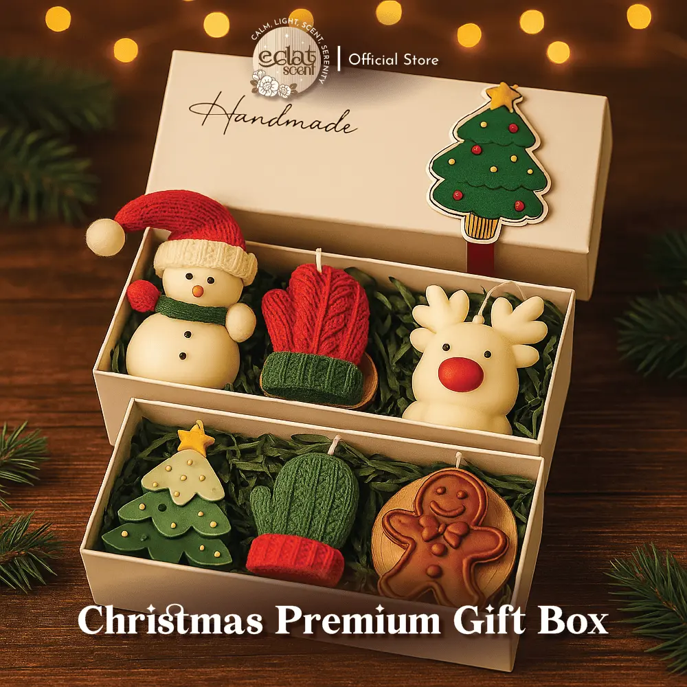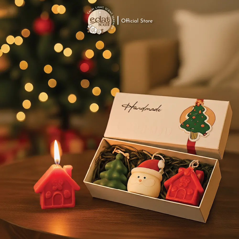Bingung cari kado Natal yang unik, berguna, dan mewah? Eclat Candles menghadirkan koleksi Handmade Scented Candle dengan bentuk ikonik Natal yang sangat detail. Dibuat dengan penuh cinta untuk menciptakan suasana rumah yang tenang, harum, dan estetik.