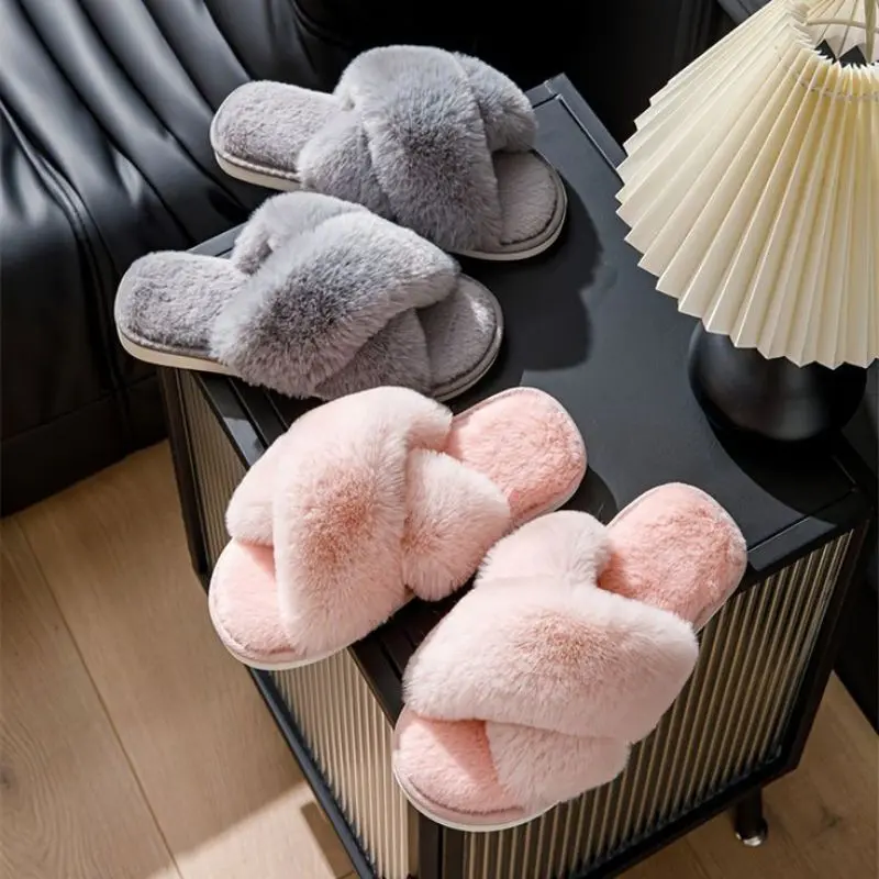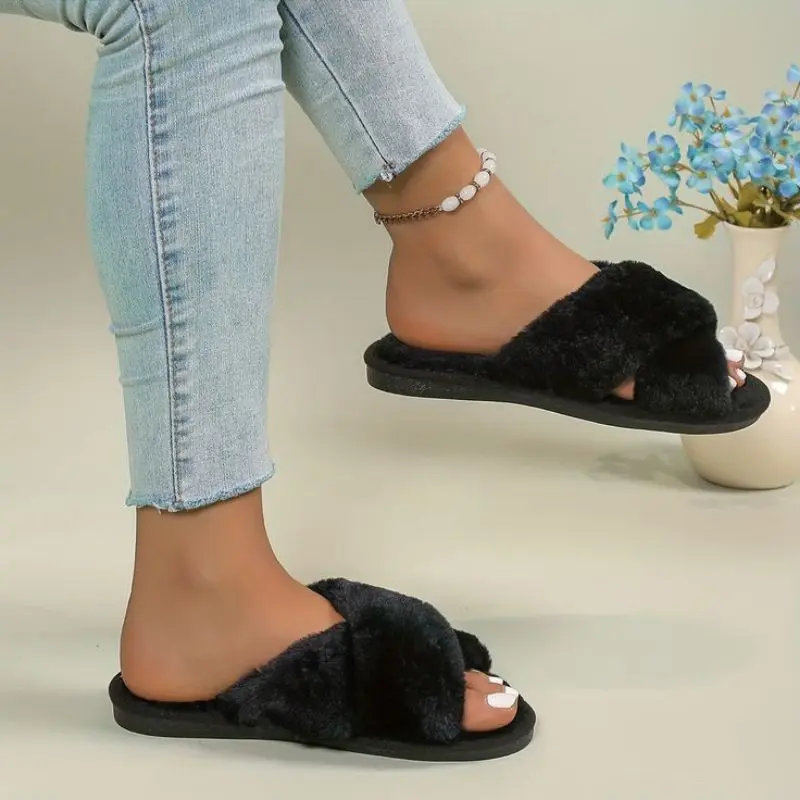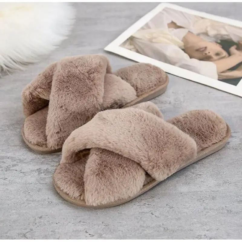 5. sandal rumah bulu korea tebal halus ( model silang )