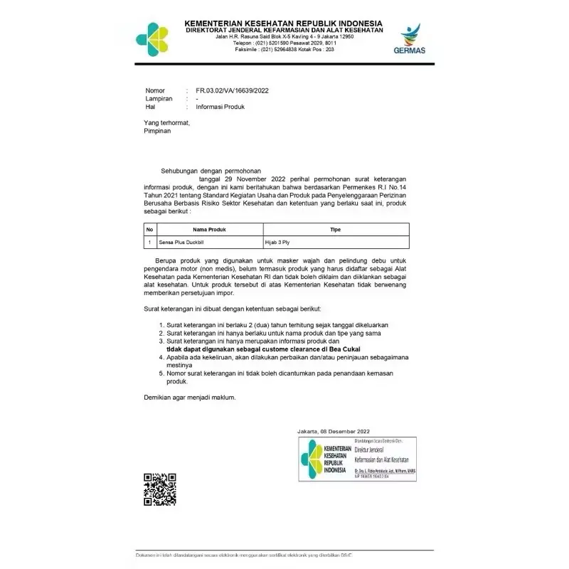 Masker Duckbill Hijab Headloop Sensa Plus 3ply 1 Box 50pcs KS