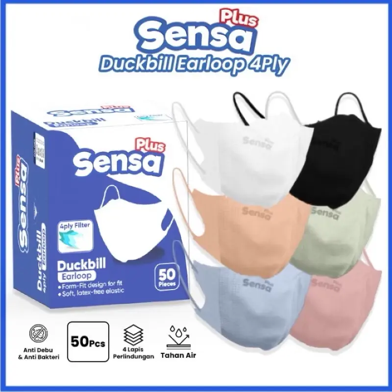 Masker Duckbill 4ply Earloop Sensa Plus isi 50pcs