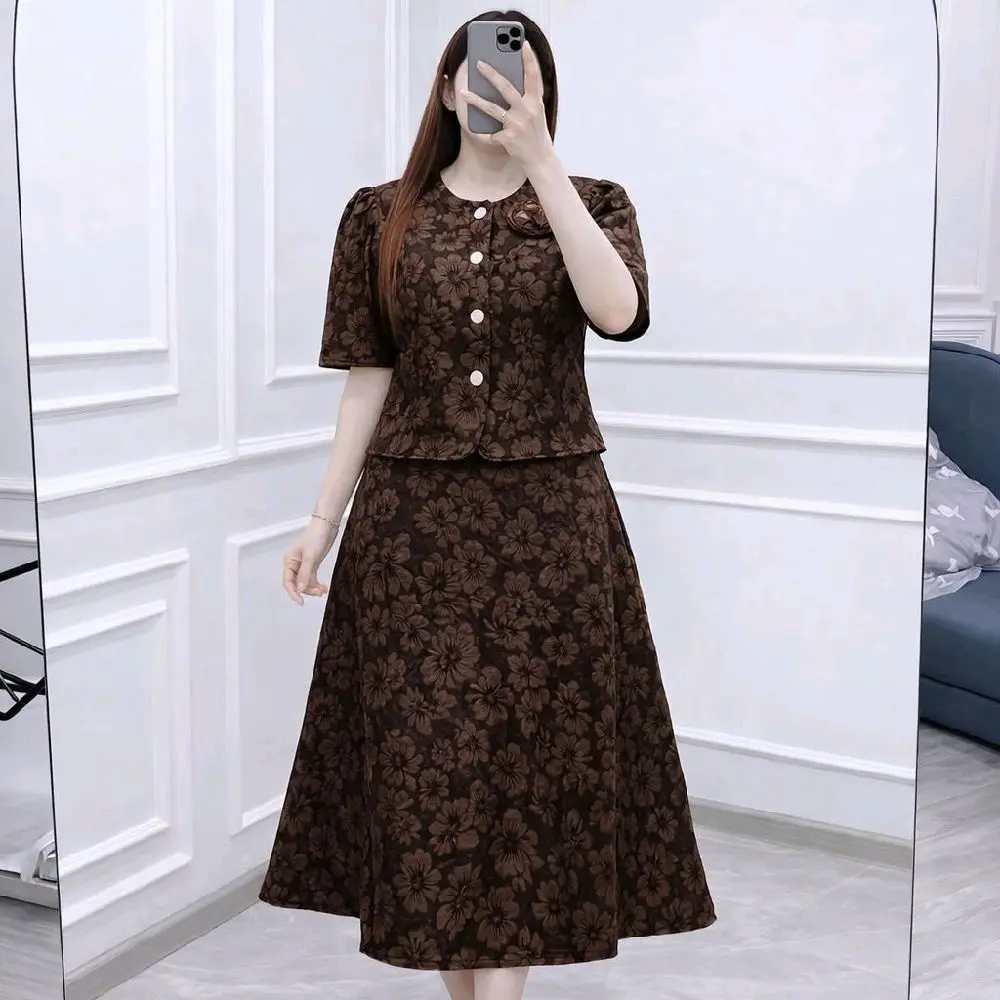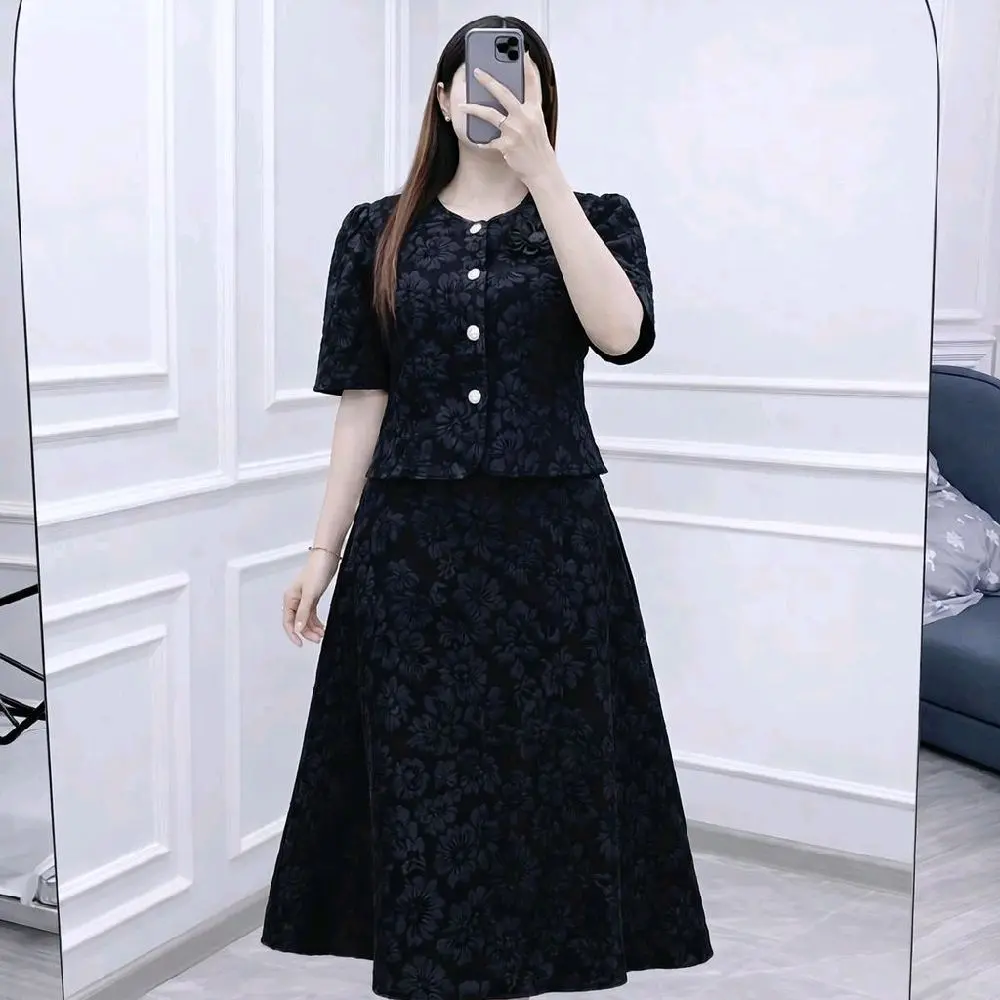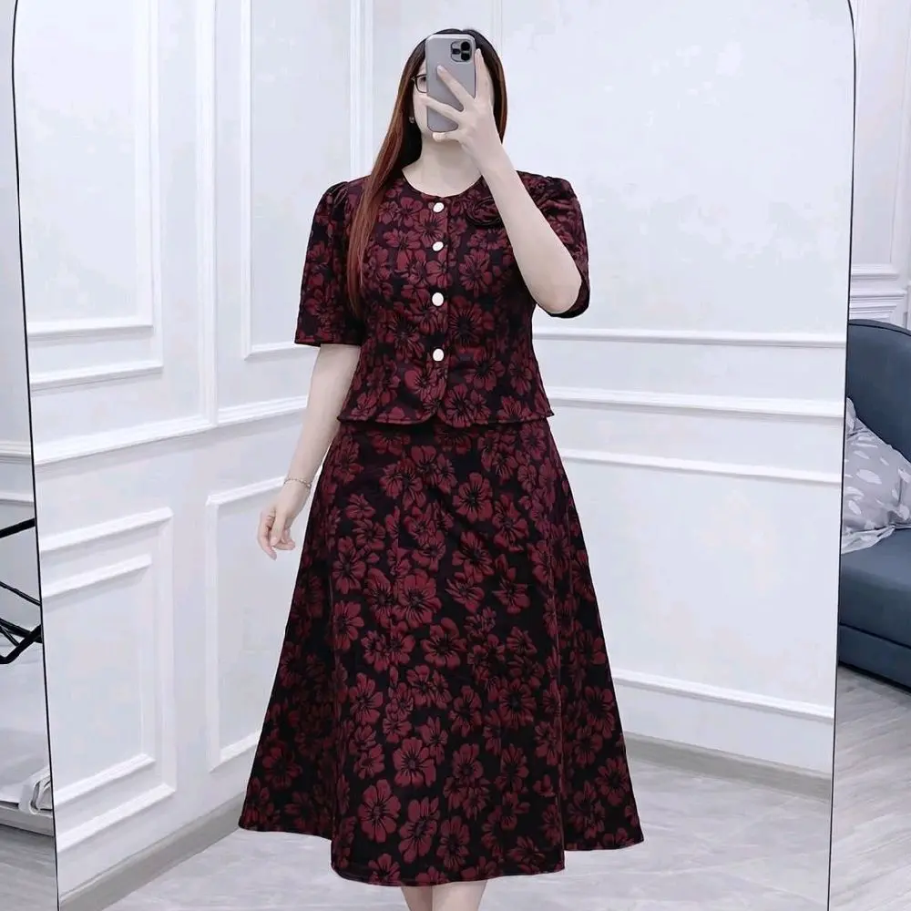 * Bahan Jacquard Premium: Setelan rok ini terbuat dari bahan jacquard premium, memberikan tampilan yang elegan dan nyaman.
