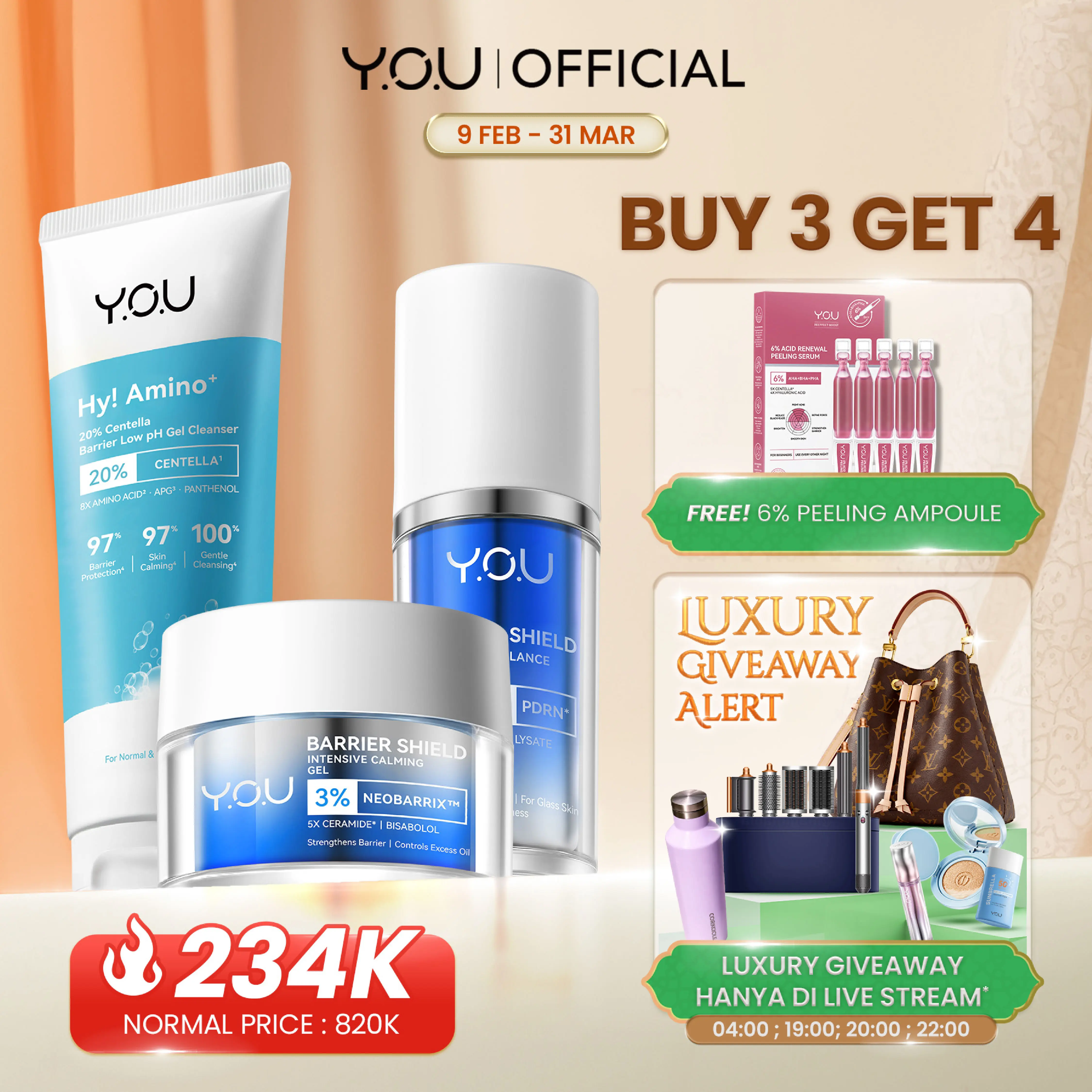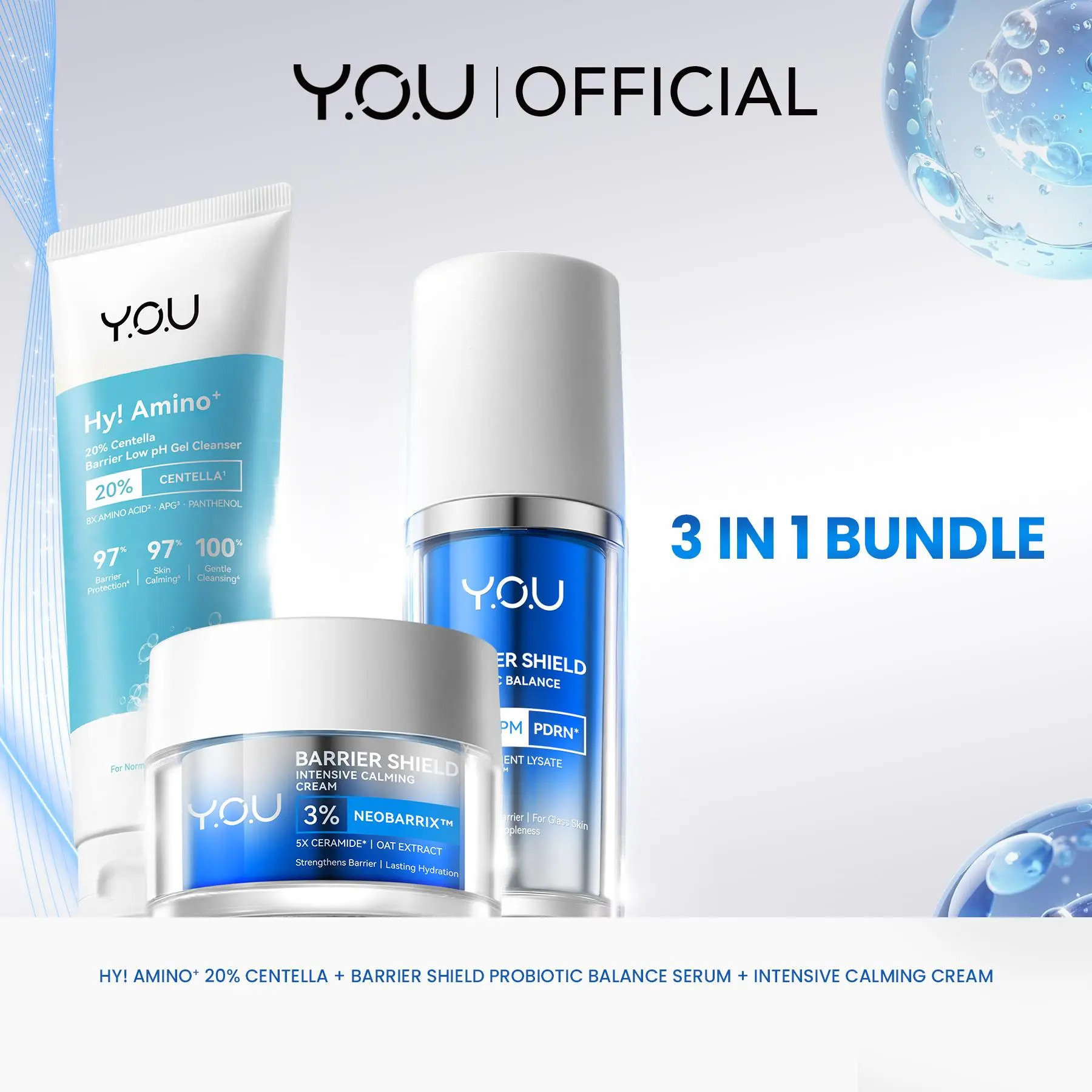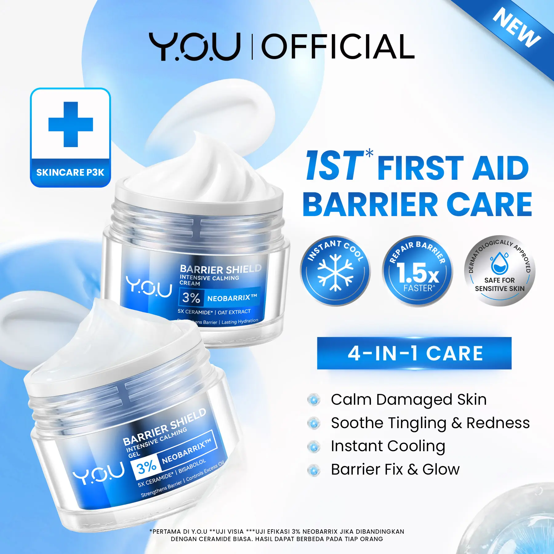 Rangkaian produk Y.O.U untuk jaga skin barrier & bantu menenangkan kemerahan yang terlihat. Telah teruji secara dermatologis untuk kulit sensitif & cocok digunakan untuk semua jenis kulit.