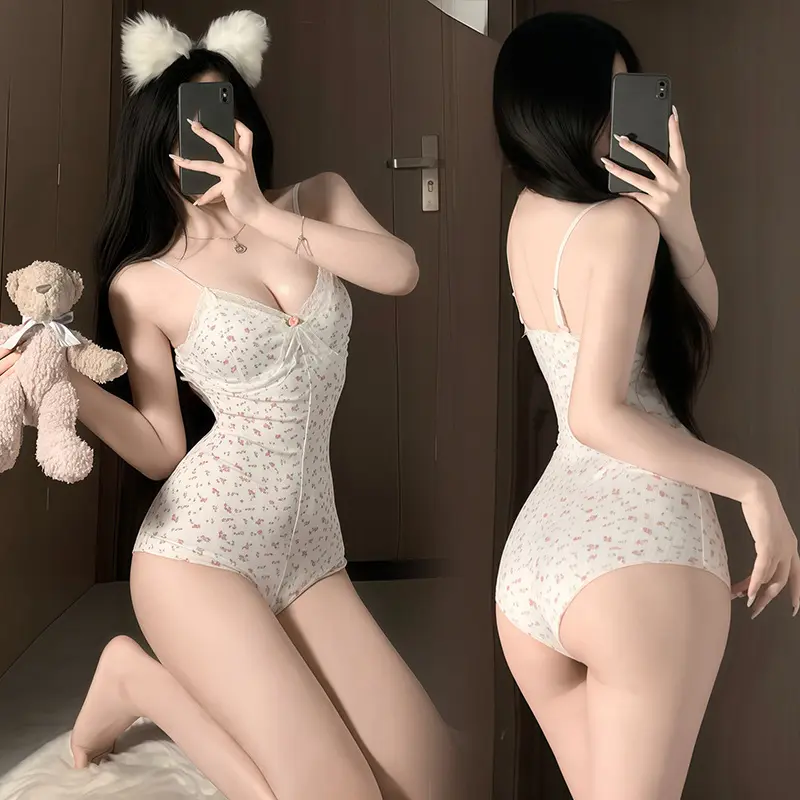 ·Desain Elegan: Lingerie jumpsuit ini dilengkapi dengan renda bunga yang menambah kesan cantik dan feminin. 🌸