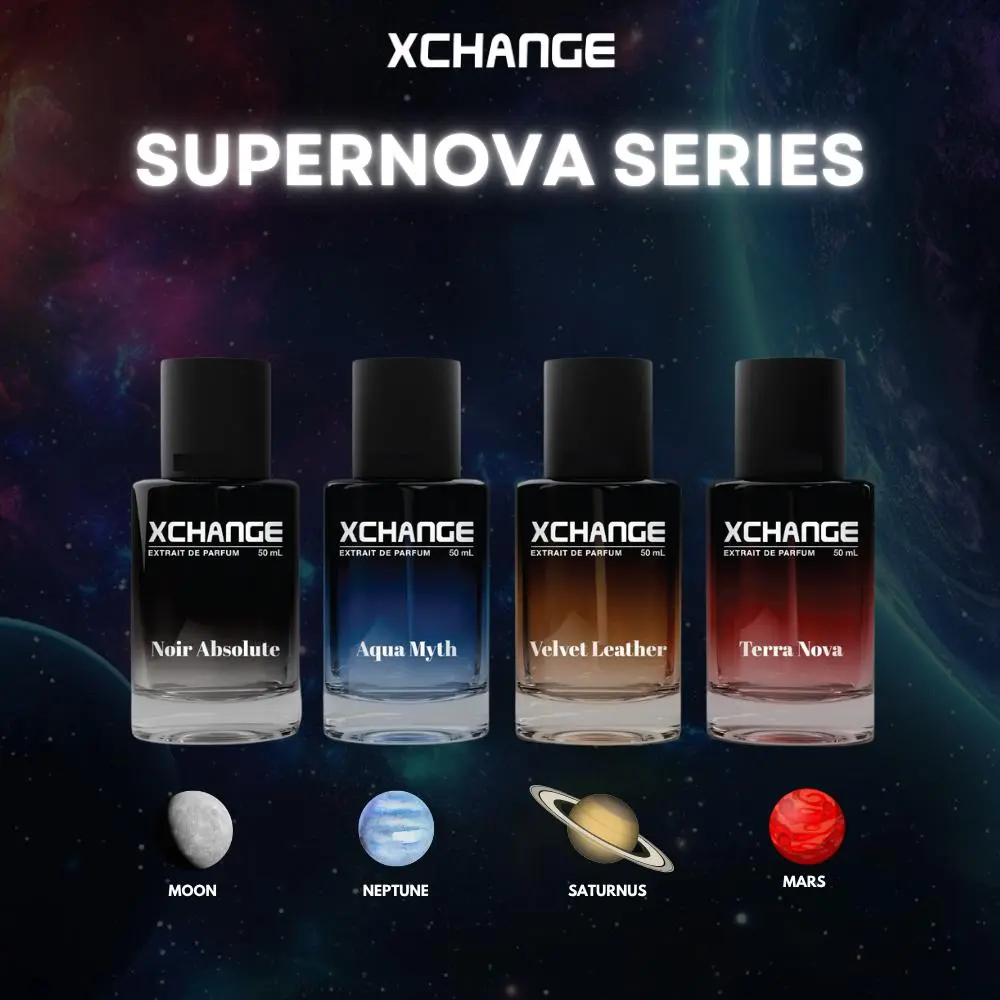 Terinspirasi dari sebuah ledakan fenomenal, XChange hadir memberikan aroma universe yang lahir perubahan. Kualitas Parfum kelas dunia, dikemas secara esklusif, premium & prestige dengan harga affordble namun High perceived value. Extrait de Perfume aroma Dengan ketahanan superior 13-18 jam, Jejak aroma yang di design untuk meninggalkan signature scent yang kuat dan ekslusif sehingga meninggalkan gravitasi aroma.
