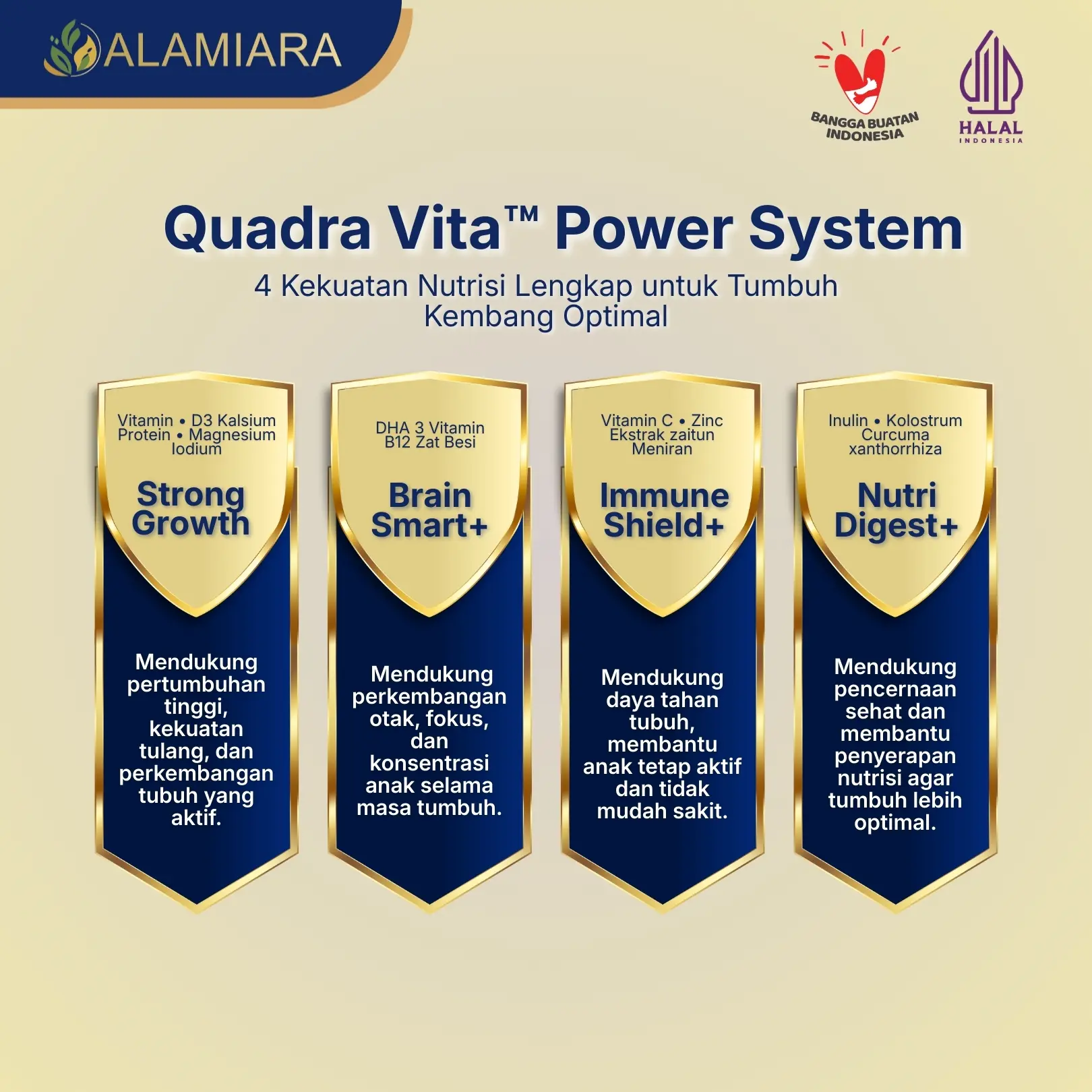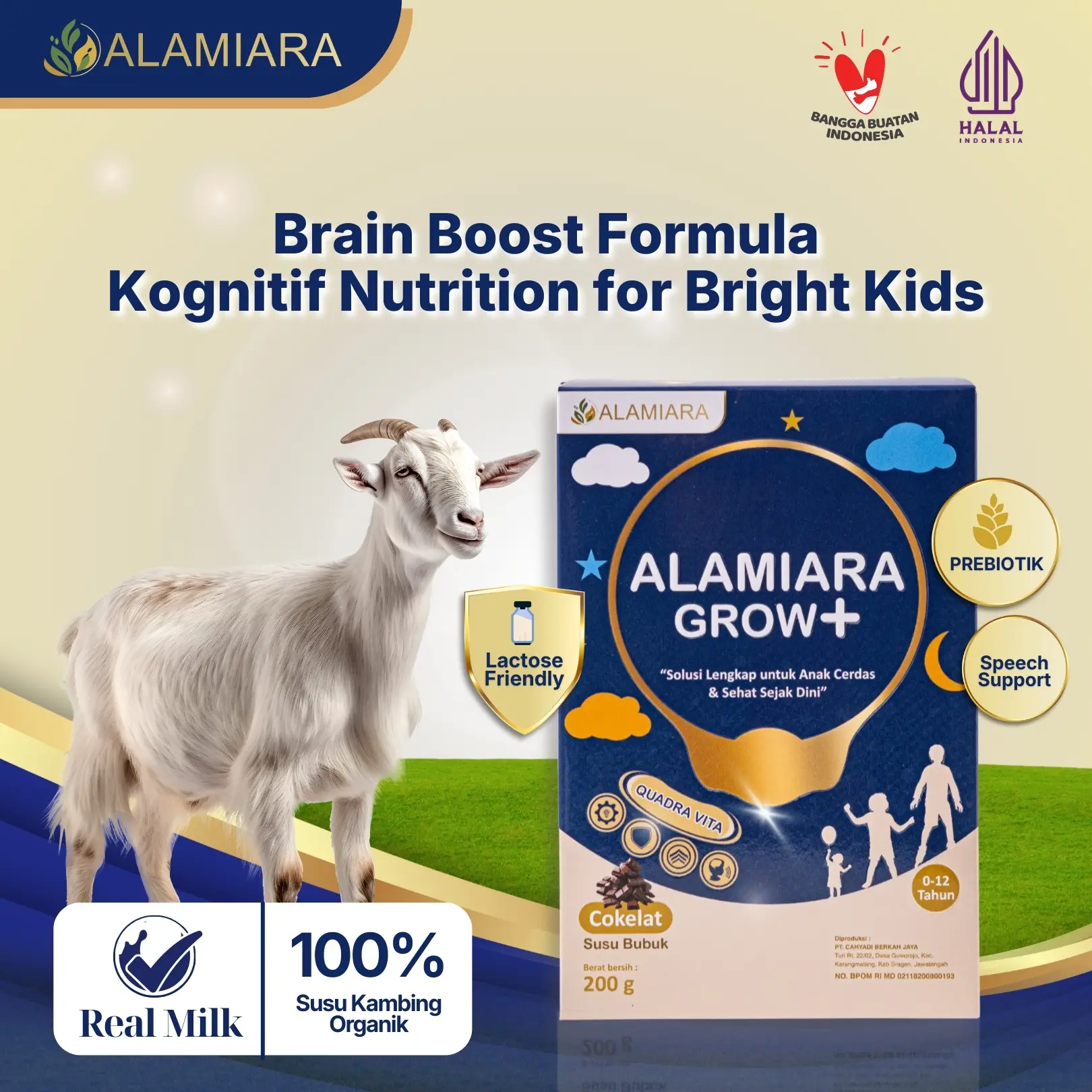 Susu nutrisi anak untuk mendukung tumbuh kembang optimal di masa emas. Diformulasikan dengan DHA, Prebiotik (Inulin), Vitamin B Kompleks, Vitamin D3, Zinc, Kalsium, dan Kolostrum. Manfaat utama: Mendukung fungsi otak, fokus & konsentrasi belajar Mendukung kesehatan pencernaan & penyerapan nutrisi Mendukung daya tahan tubuh anak Mendukung pertumbuhan tulang & fisik anak Tanpa pemanis buatan Rasa enak (Vanilla / Cokelat) Cocok dikonsumsi rutin usia 0–12 tahun Berat bersih: 200 g Bukan obat & bukan pengganti terapi. Hasil dapat berbeda tiap anak.