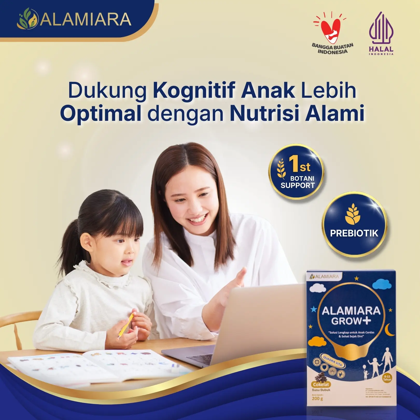 5. Alamiara Susu Anak Nutrisi Otak & Fokus Belajar | Dukung Pencernaan & Imun 0–12 Tahun VANILLA 2 COKLAT 1 Paket Isi 3