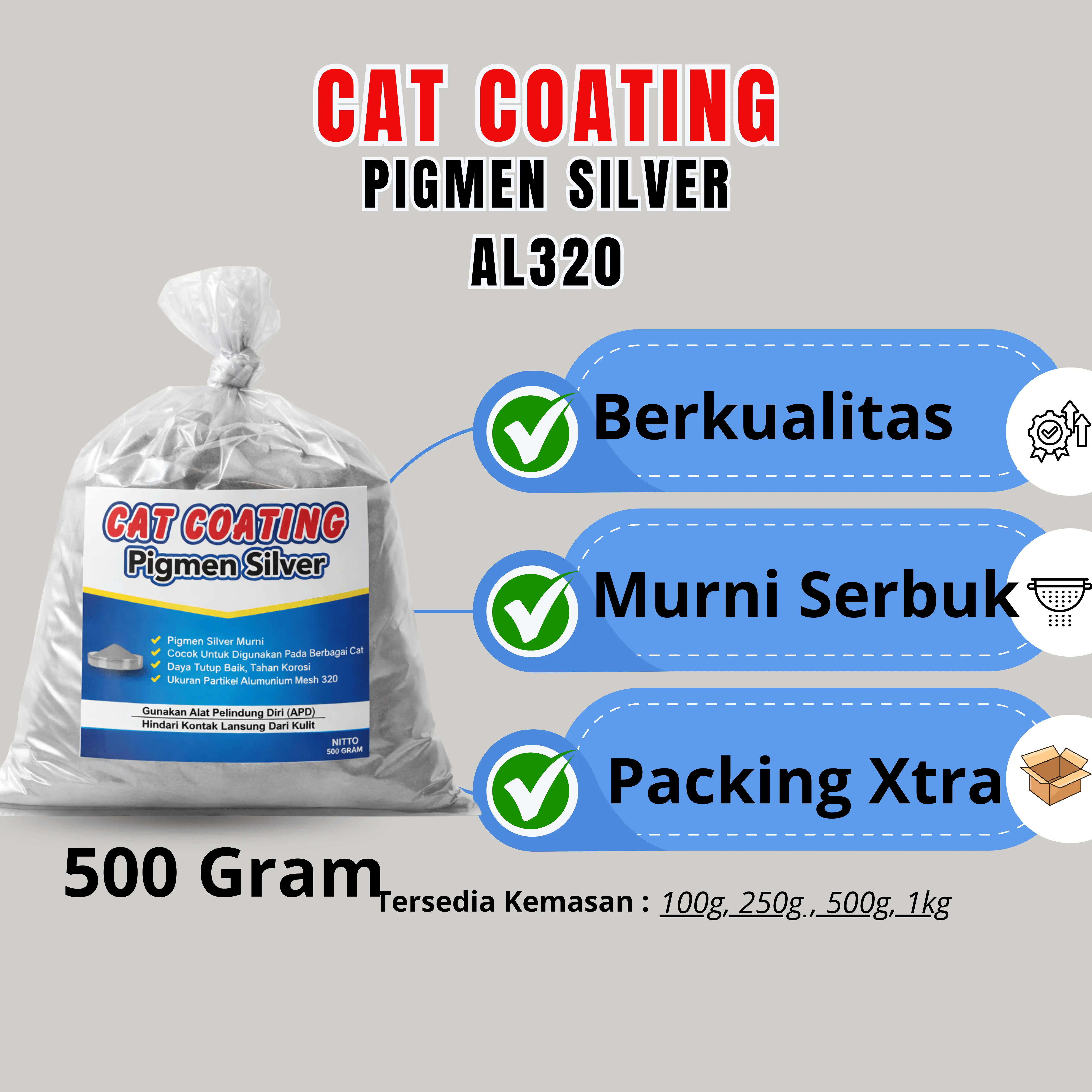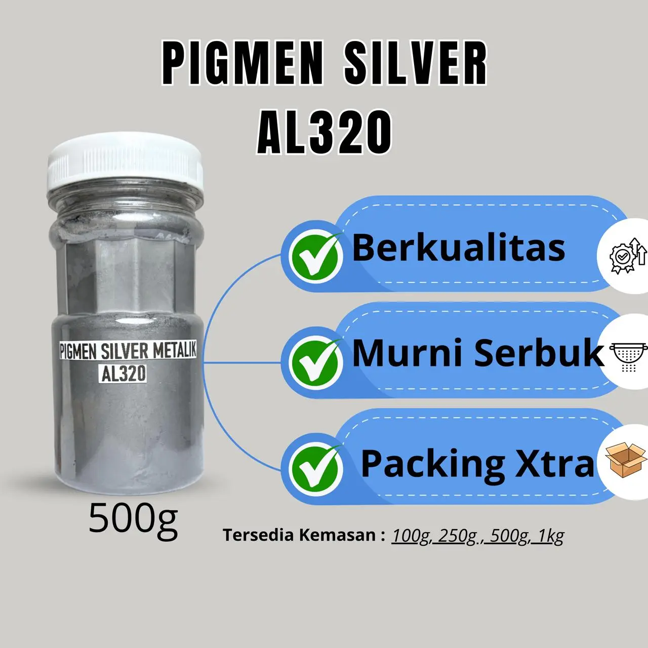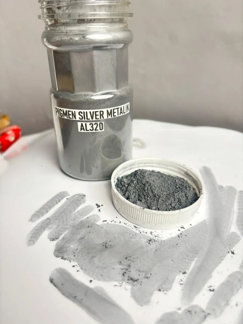 Serbuk warna silver metalik AL320 dengan tingkat kehalusan tinggi, cocok banget buat kamu yang suka project DIY!