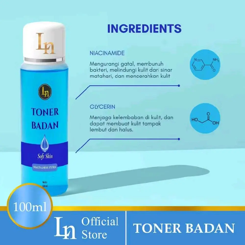 Toner badan ori LN dosting super premium 100mil, pembersih daki da Antioksidan dgn niacinamide