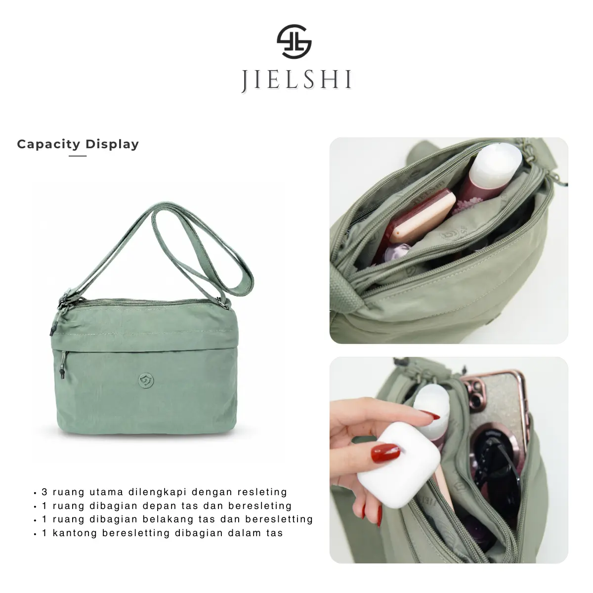 * Terdapat logo JIELSHI dibagian depan tas
