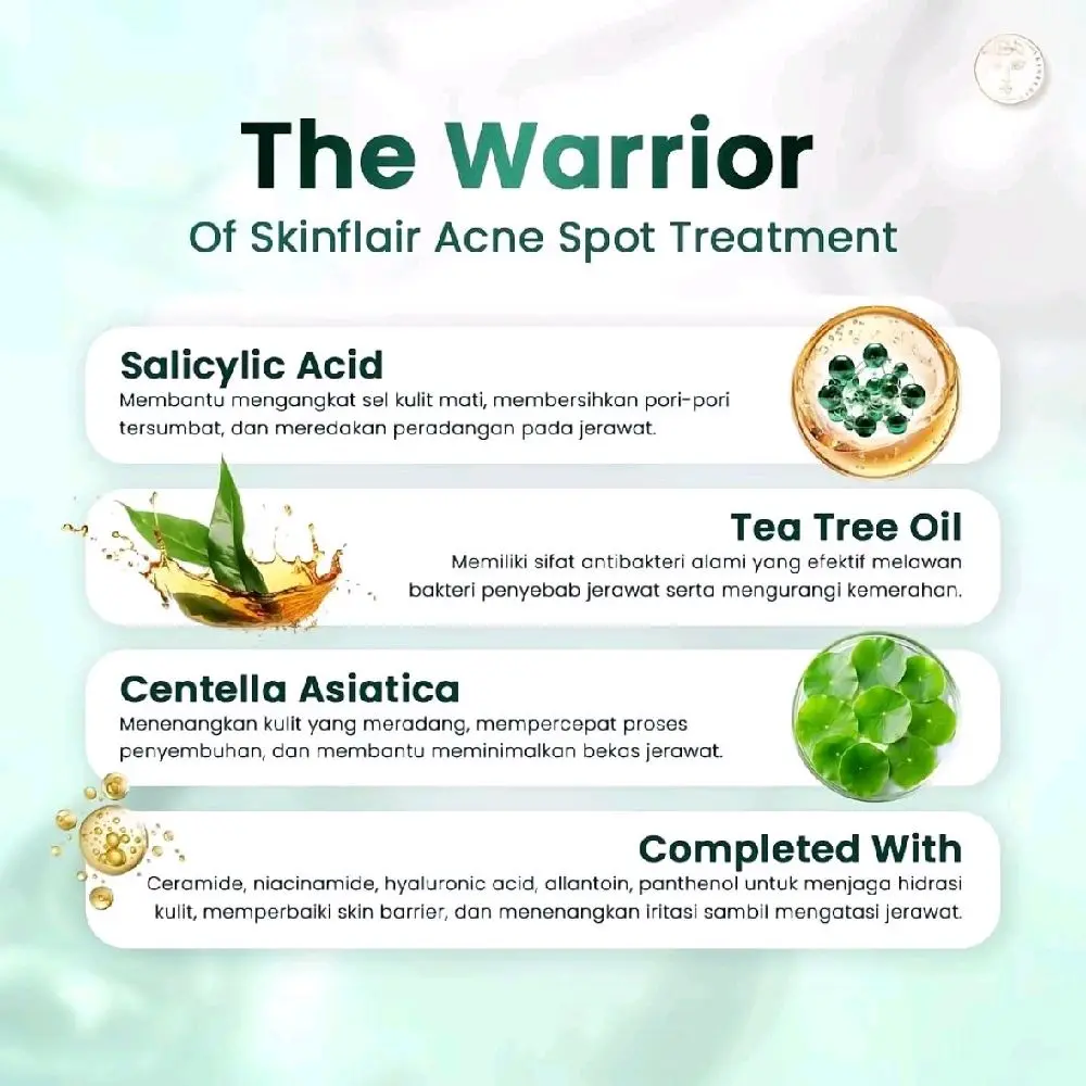 Dengan kandungan Salicylic Acid, Tea Tree Oil, Centella Asiatica, Ceramide yang dikenal ampuh untuk meredakan jerawat yang membandel sekalipun.