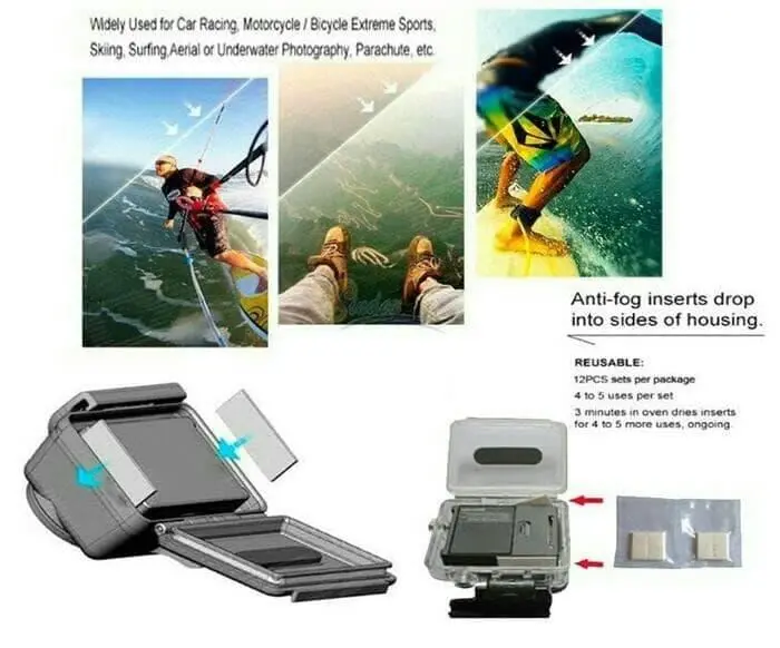 Anti fog ini berfungsi untuk menghilangkan embun saat Anda menggunakan Xiaomi Yi / GoPro di air. Cara pasangnya sangat gampang dengan menyelipkan anti fog ke casing waterproof.