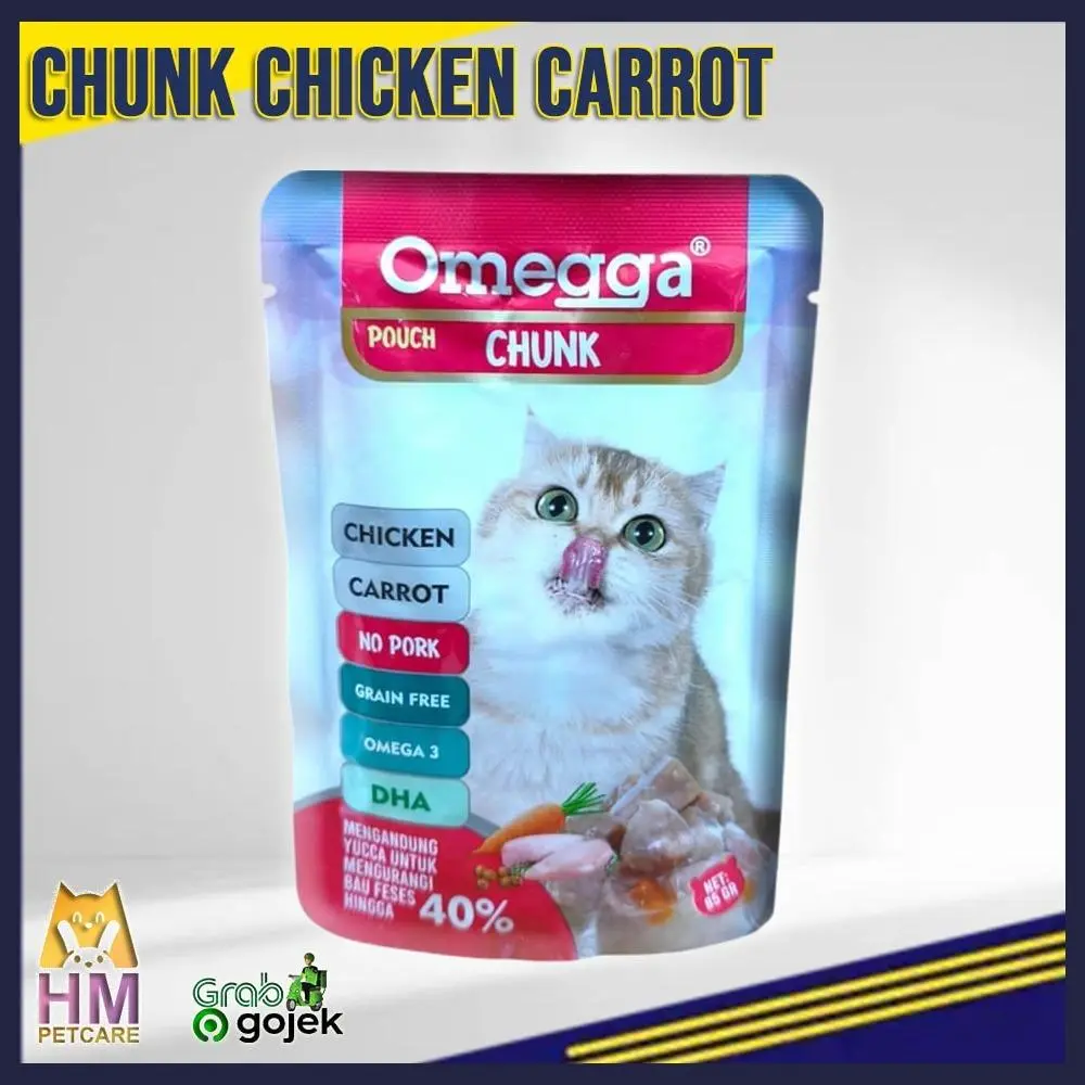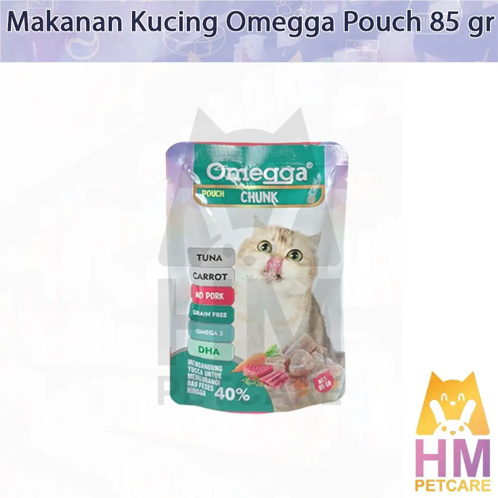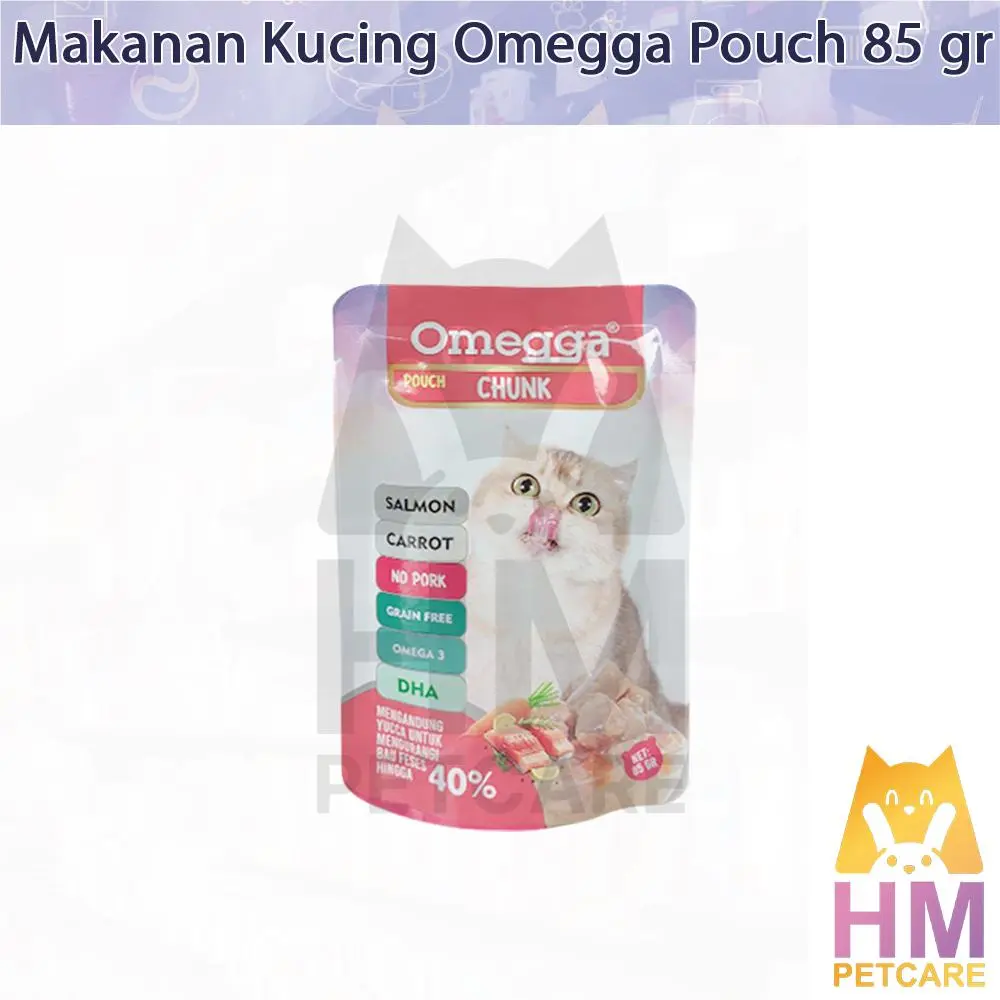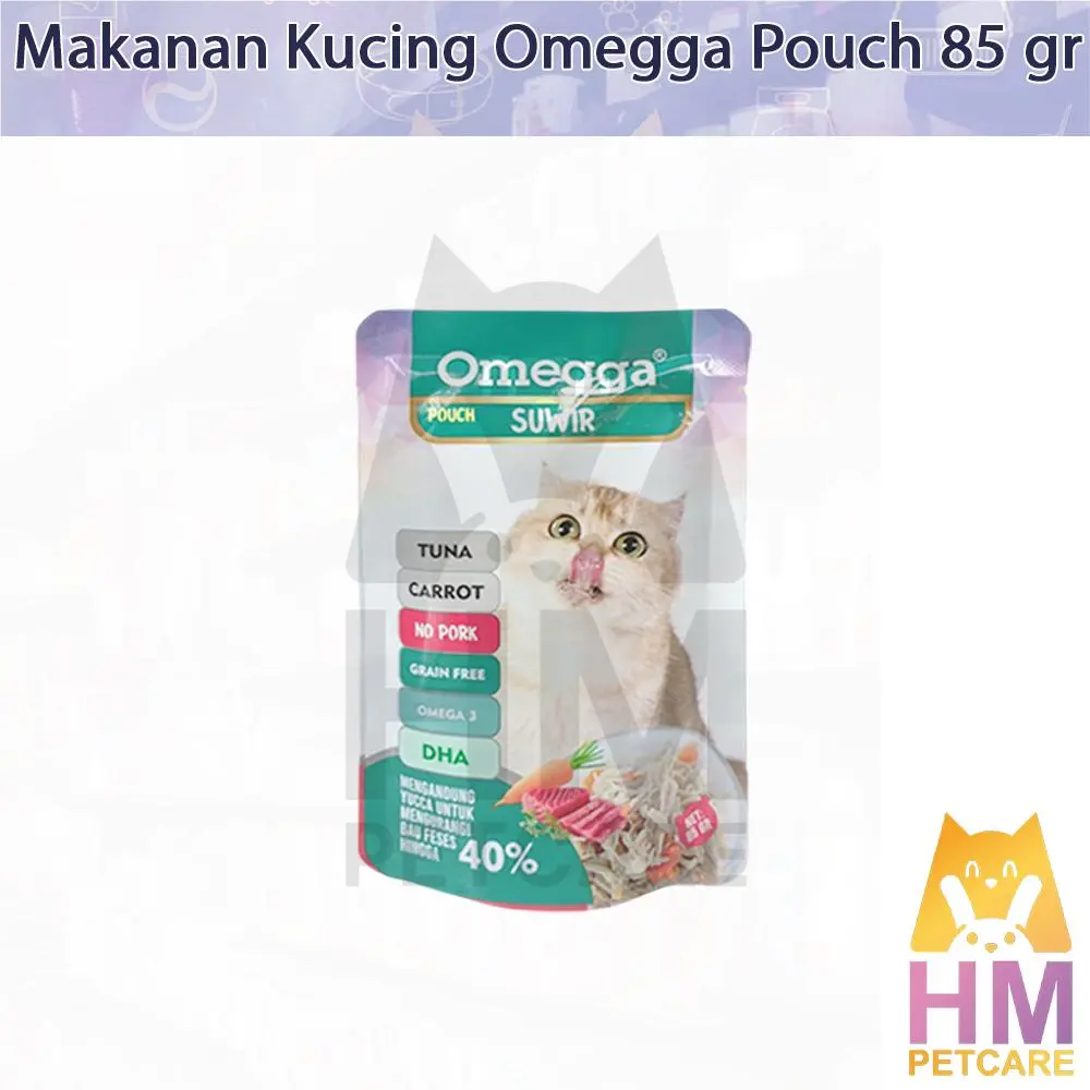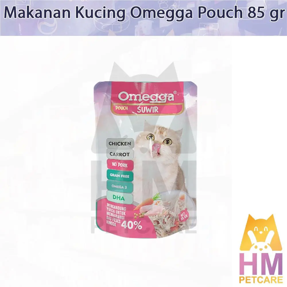 Berikan makanan sehat dan lezat untuk kucing Anda dengan Omegga Pouch Fitur Utama: 1. Bahan Berkualitas Tinggi: Dibuat dari daging ayam, salmon, dan tuna segar dengan tambahan wortel alami. Tanpa daging babi (No Pork) untuk menjaga kehalalan produk. 2. Kaya Nutrisi: Diperkaya dengan DHA dan Omega-3 untuk mendukung kesehatan bulu, kulit, dan otak kucing Anda. 3. Grain-Free Formula: Cocok untuk kucing dengan alergi terhadap gandum atau biji-bijian lainnya. 4. Mengurangi Bau Kotoran: Mengandung yucca extract yang efektif mengurangi bau kotoran hingga 40%. 5. Tekstur Halus: Tekstur lembut, mudah dicerna, dan disukai kucing. Spesifikasi Produk: Berat bersih: 85 gram per pouch. Cocok untuk semua usia dan ras kucing. Cara Penyajian: 1. Sajikan langsung dari kemasan atau hangatkan untuk meningkatkan aroma. 2. Pastikan kucing Anda memiliki akses ke air minum bersih setiap saat. Keunggulan Produk: Dibuat dari bahan alami tanpa tambahan pengawet buatan. Mudah dicerna dan sangat disukai kucing. Mendukung kesehatan pencernaan, kulit, dan bulu kucing Anda. Jadikan setiap waktu makan lebih istimewa dengan Omegga Pouch. Pilih varian favoritnya sekarang dan berikan yang terbaik untuk kucing kesayangan Anda!