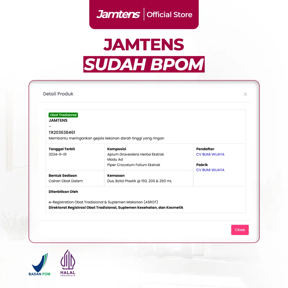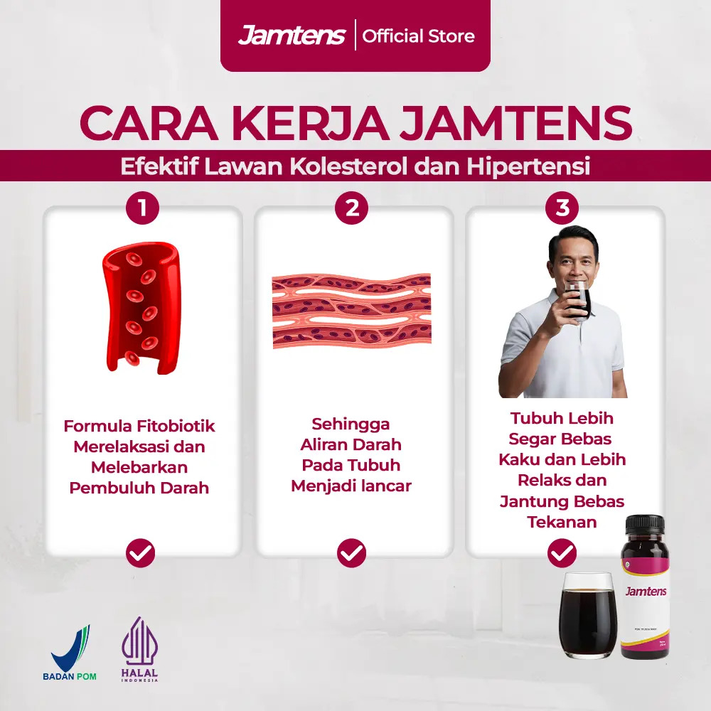 Jamtens adalah sebuah inovasi herbal Fermentasi yang diracik langsung oleh ahli herbal berpengalaman lebih dari 15 tahun, yang terbukti membantu menurunkan angka & menstabilkan Kolesterol serta Hipertensi.