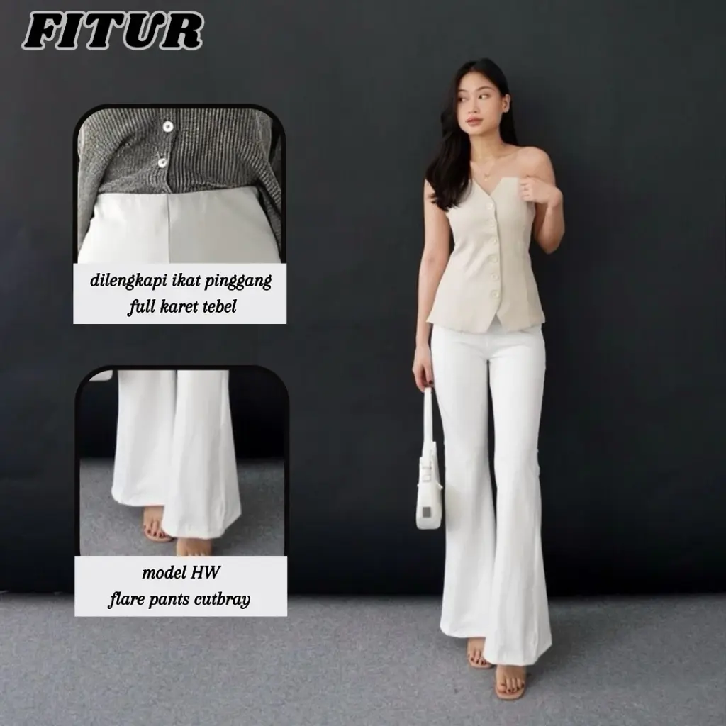 Kylie Cutbray Pants Highwest Celana Flare Pants Wanita Semi Woll Premium