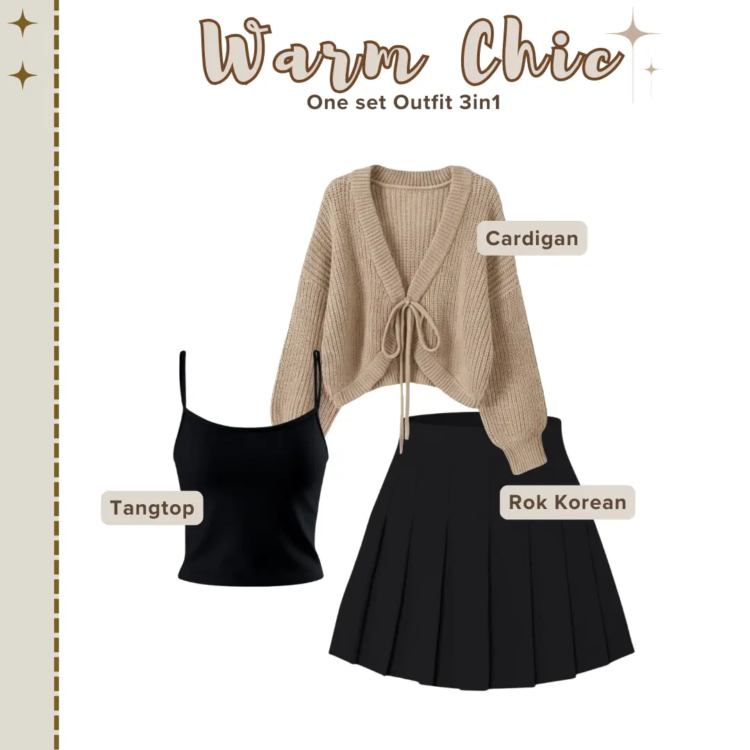 5. One Set Korea Style Wanita Kekinian ( Cardigan + Tanktop + Rok Pendek ) Setelan Outfit Remaja AMO82