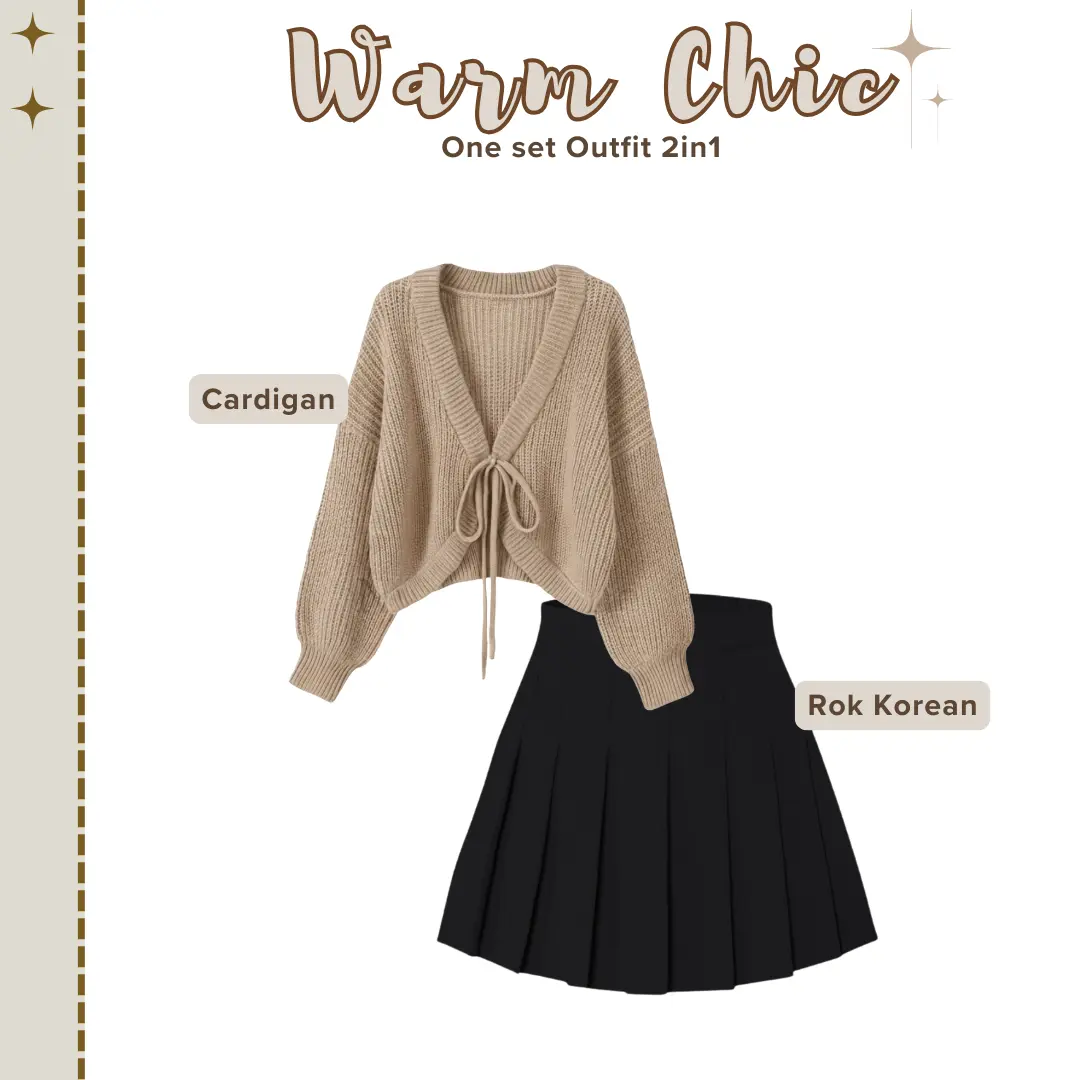 One Set Korea Style Wanita Kekinian ( Cardigan + Tanktop + Rok Pendek ) Setelan Outfit Remaja AMO82