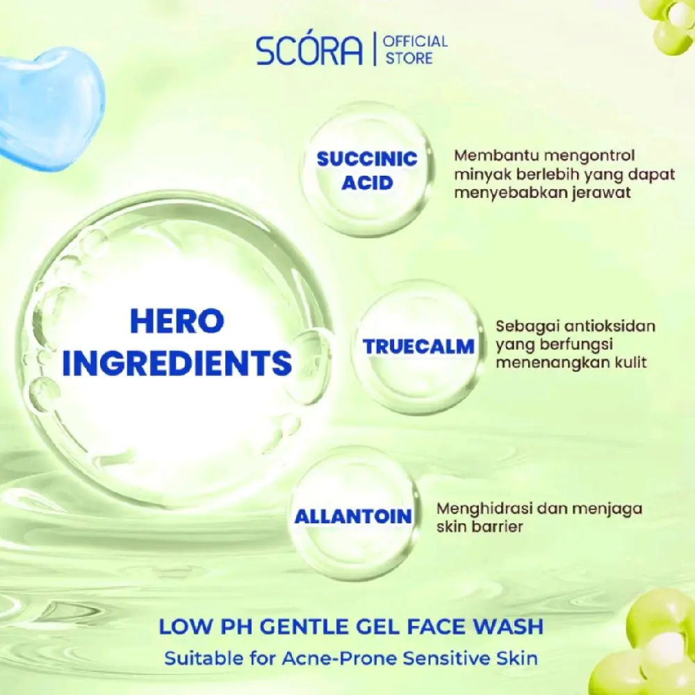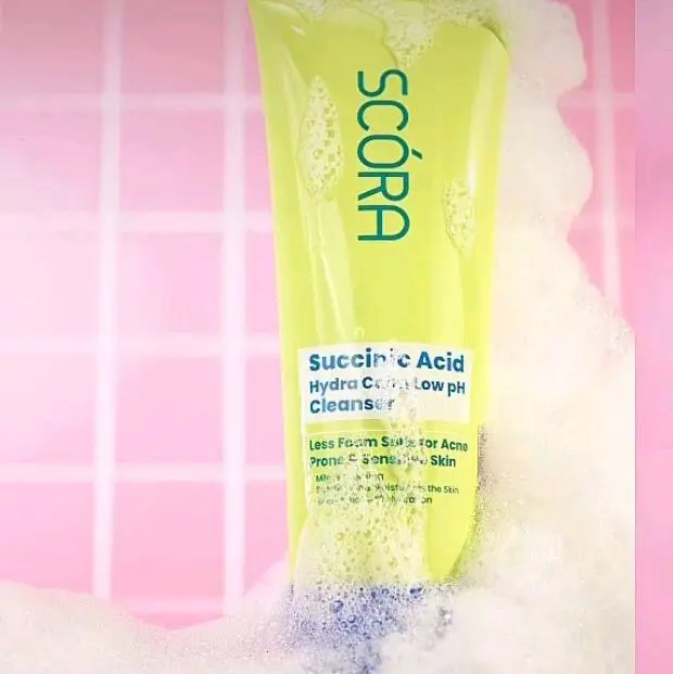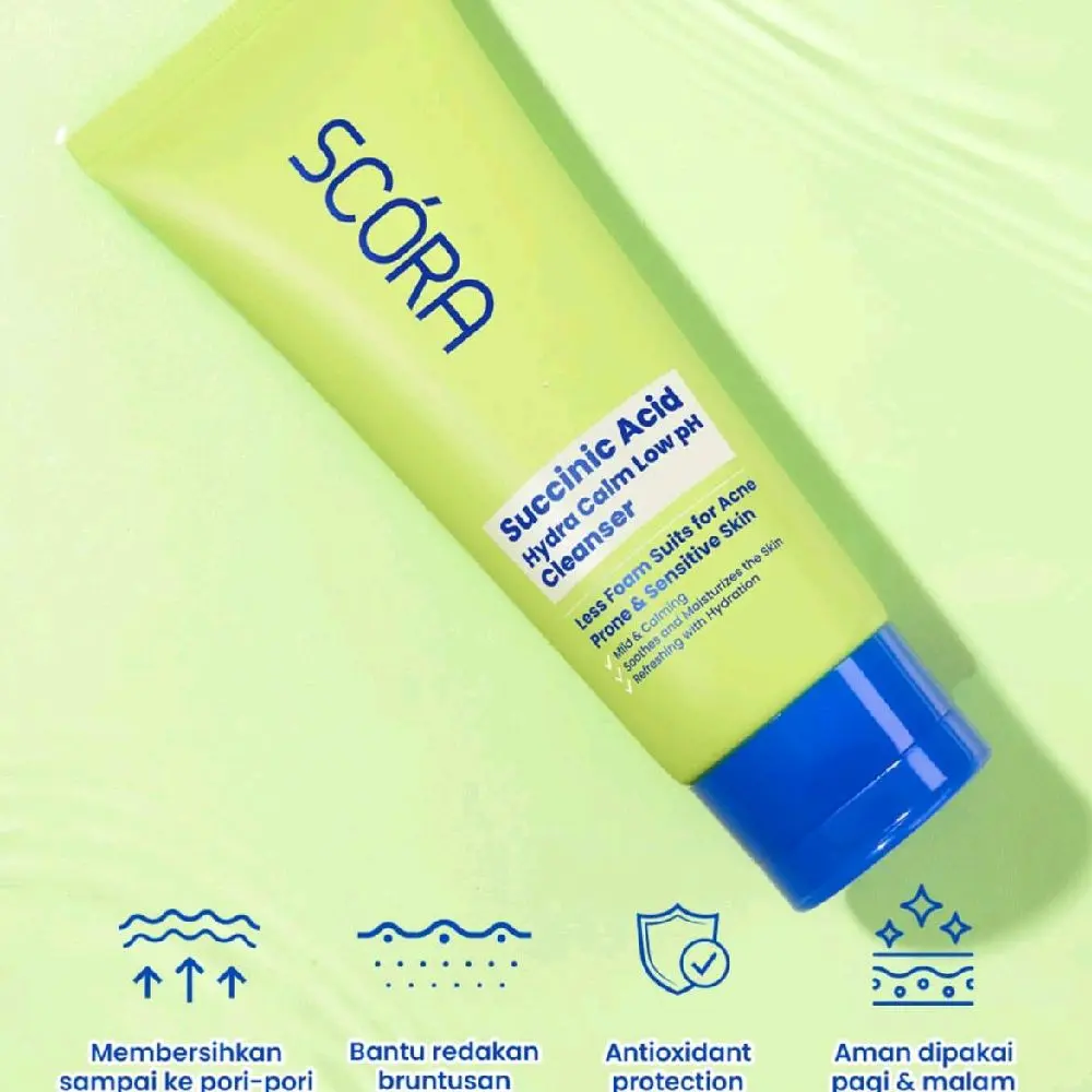- Tuangkan SCORA Succinic Acid Hydra Calm Low pH cleanse secukupnya ke telapak tangan