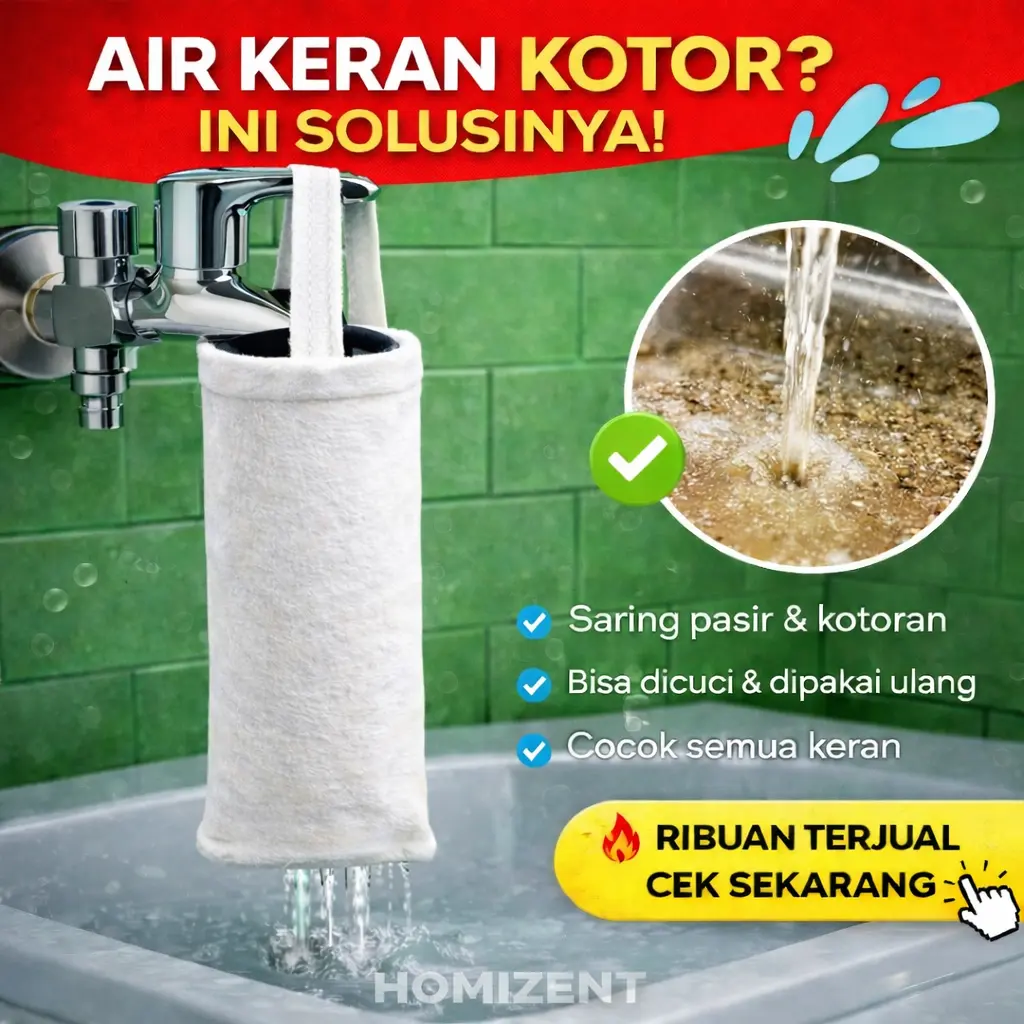 Filter keran air praktis bikin air jadi jernih. Kami menjual filter kran air yang dapat menyaring kotoran dalam air, membuat air lebih bersih dan sehat. Filter ini dapat menyaring air dari bau karat, kuning, lumut, jentik nyamuk, pasir, dan partikel kotor lainnya.