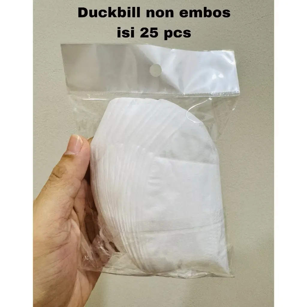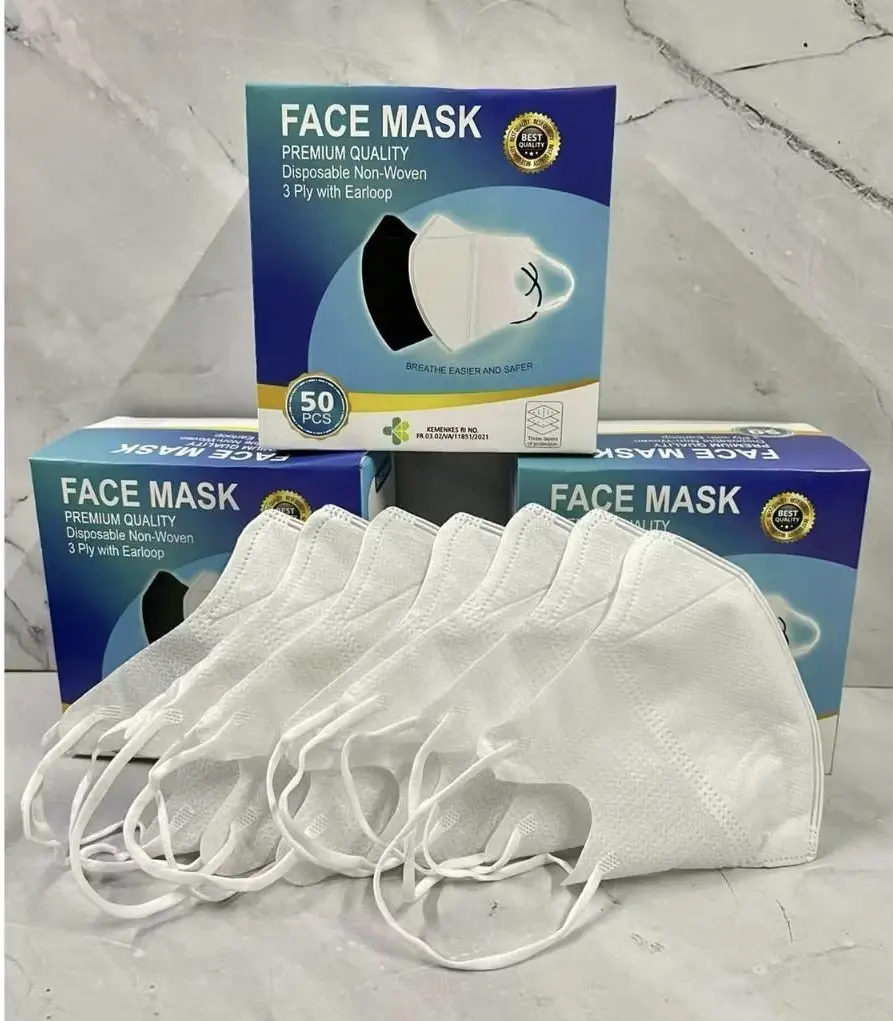 - Masker pelindung wajah dengan desain model Duckbill Face Mask Earloop (dikaitkan langsung di telinga)