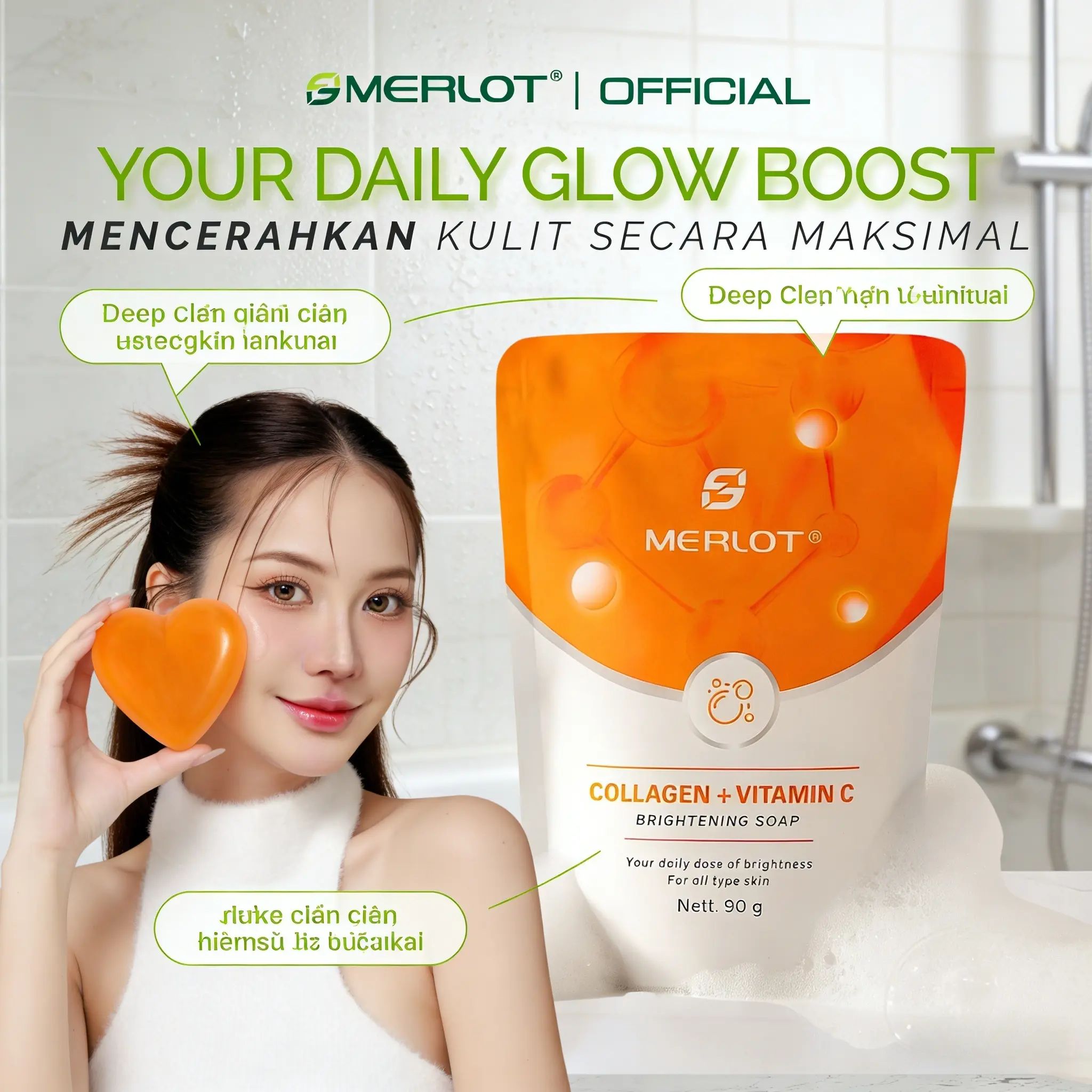 ✨ Merlot Sabun Pencerah Kulit Kolagen + Vc 90 G ✨