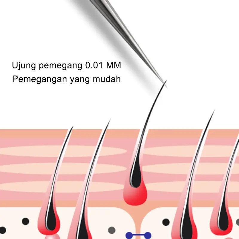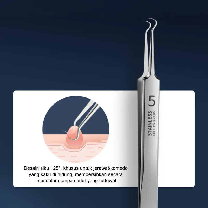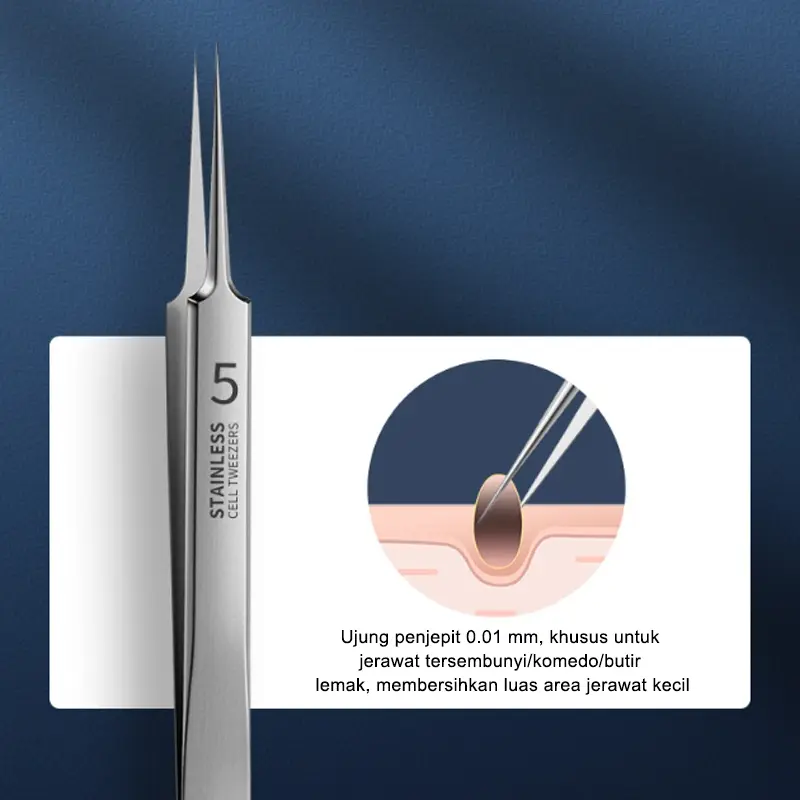 - Presisi Tinggi 0.01mm: Ujung penjepit super halus 0.01mm untuk mengangkat komedo, whitehead, dan pori-pori tersumbat secara tepat hingga ke akar.