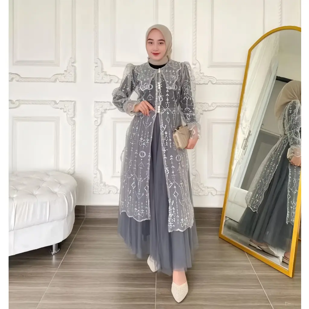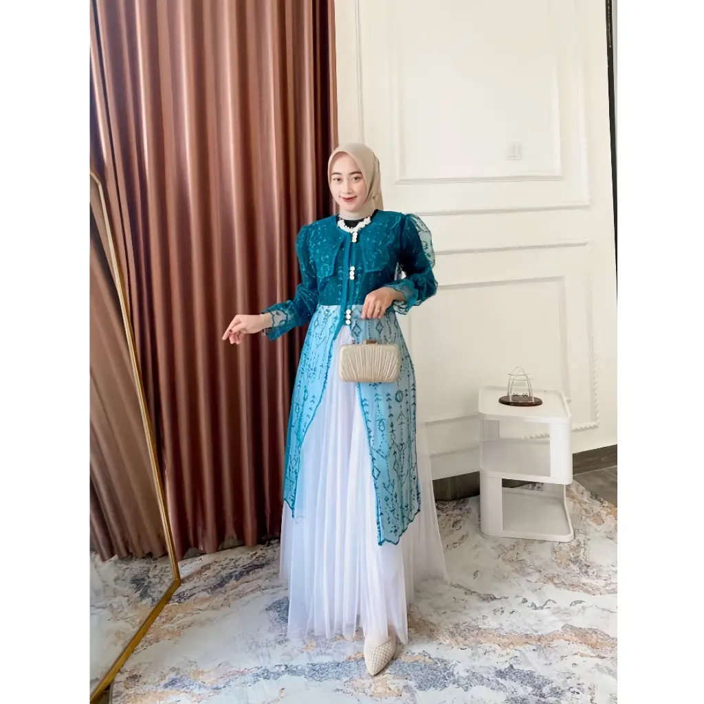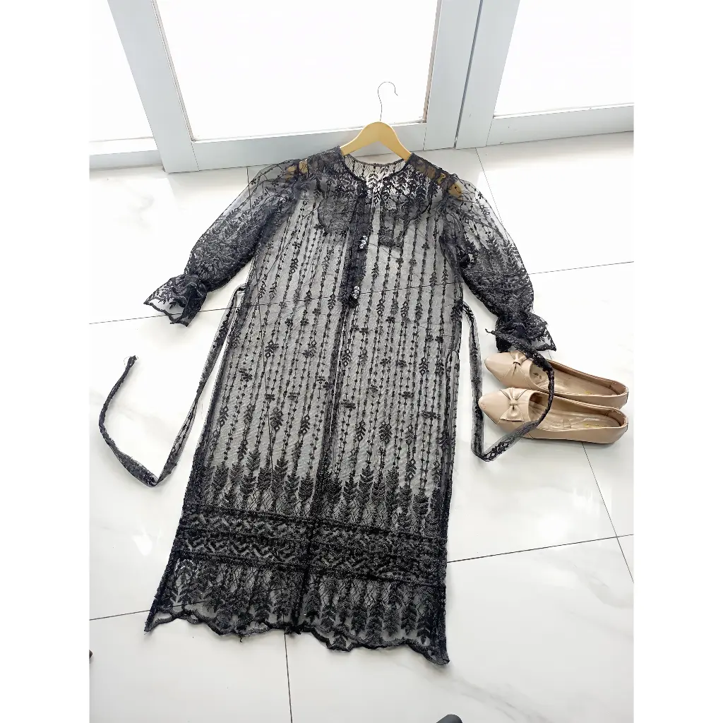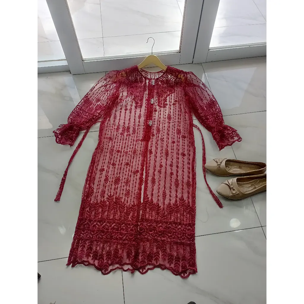 SIZE CHART - Panjang outer +- 100 cm - Panjang lengan +- 60 cm - All size LD 110 cm READY STOCK FEATURES: - Model simpel tapi manis dengan kombinasi tille ethnic & kancing premium - Kancing premium di bagian depan yang menambah kesan elegan dan mewah - Motif sesuai & sama persis yang ada di etalase produk