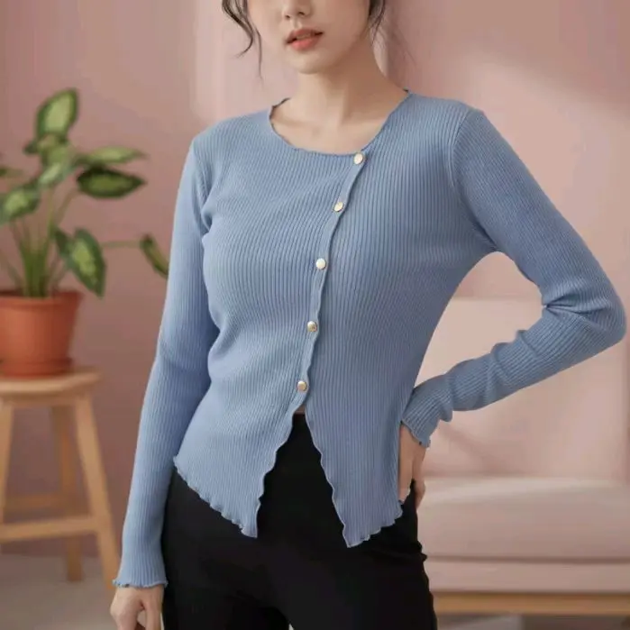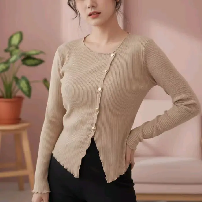 ✨ Bahan dan Model ✨ \- Bahan: Knitt \- Model: Kriwil kancing \- Atasan wanita