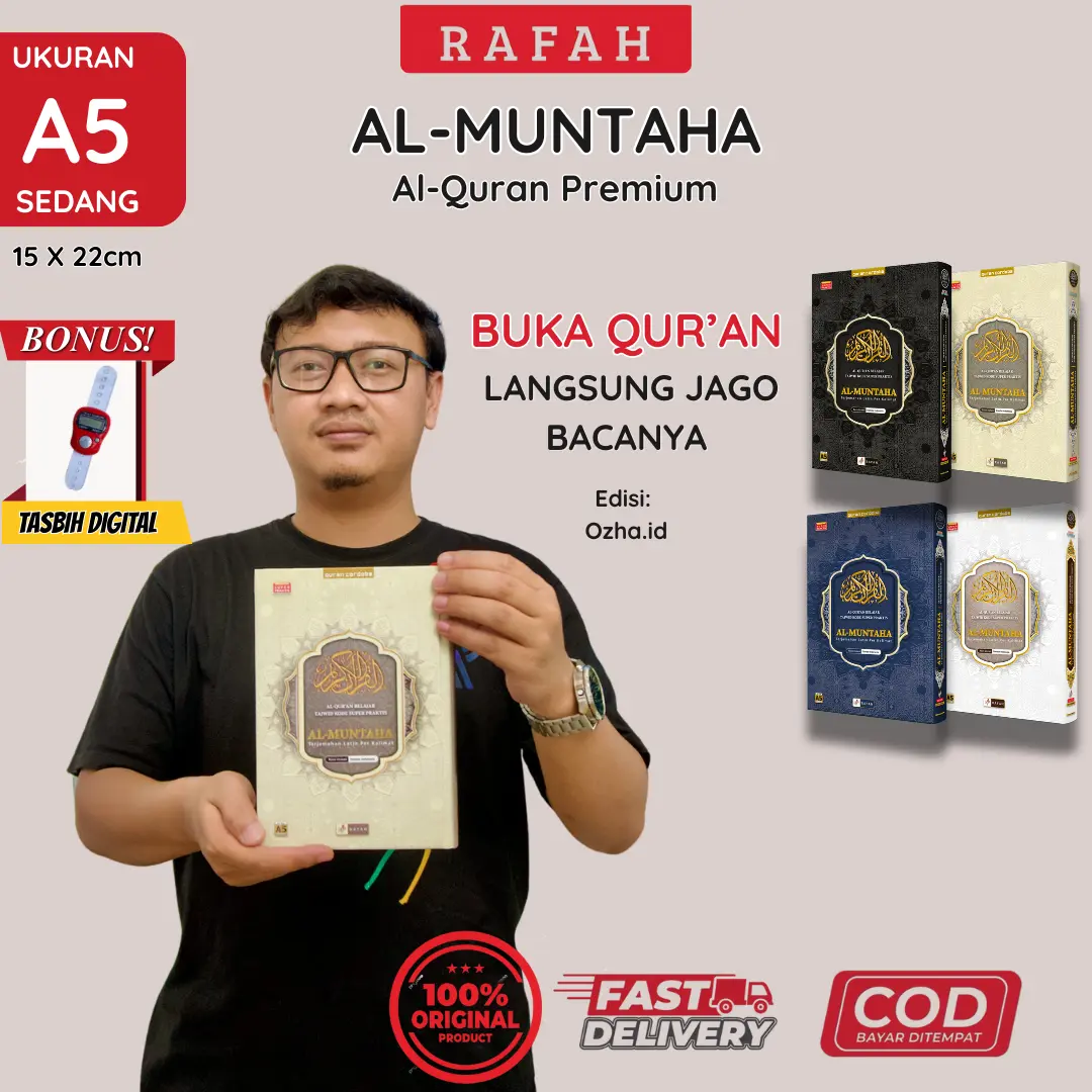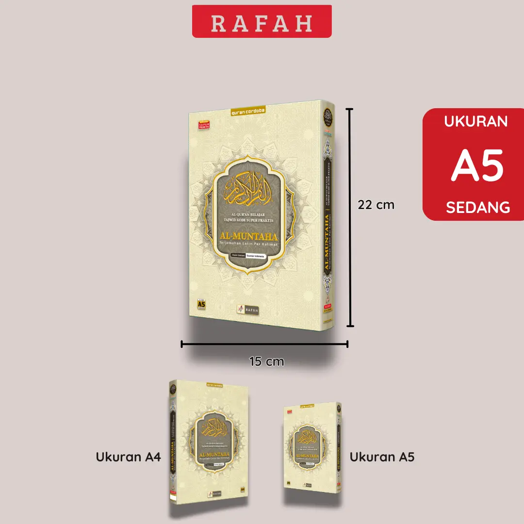 Hadir sebagai pilihan terbaik untuk ibadah Anda, Al-Qur'an Muntaha ukuran (A5) Sedang, menawarkan desain eksklusif dan fitur lengkap hasil kerja sama dengan Cordoba. Cocok untuk wakaf, gift, souvenir, atau hantaran.