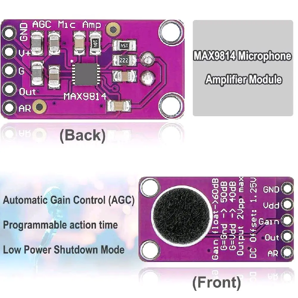 Modul ini menggabungkan mikrofon electret berkualitas tinggi, penguat low-noise MAX9814, dan teknologi AGC (Auto Gain Control) cerdas yang secara otomatis menyesuaikan sensitivitas berdasarkan intensitas suara, menghasilkan sinyal audio yang jauh lebih bersih, konsisten, dan bebas clipping, ideal untuk voice recognition, monitoring suara, maupun sistem IoT berbasis audio.