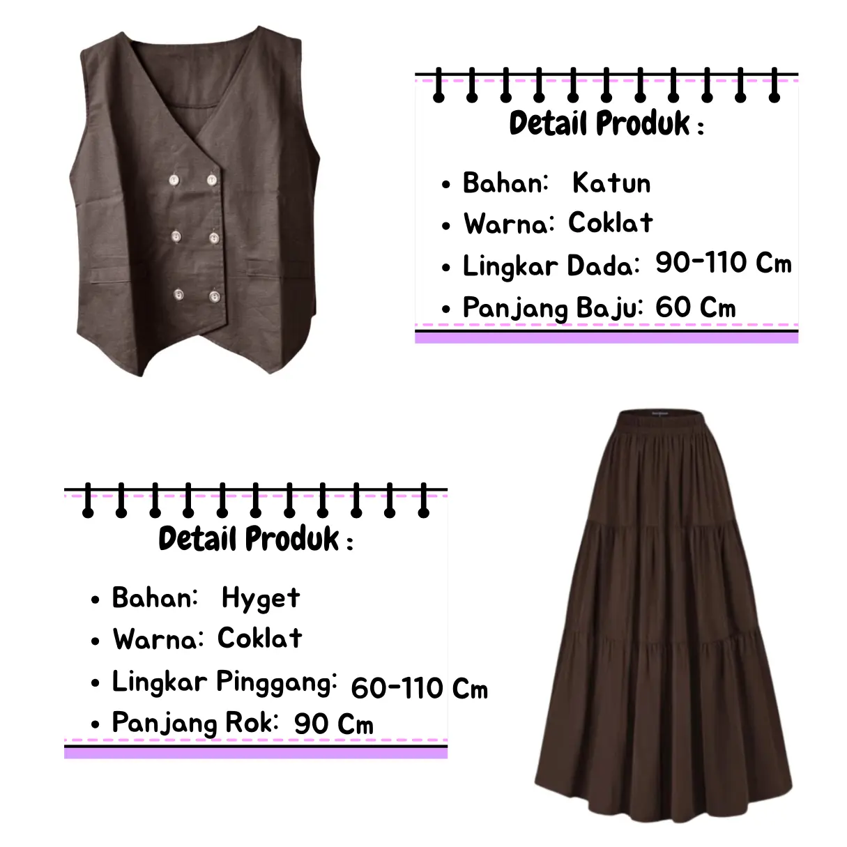 Set OOTD Yearbook Vintage look dengan nuansa Coklat Elegant ini hadir dengan vibes klasik dan aesthetic yang membuat tampilanmu terlihat manis namun tetap rapi,dan anggun.