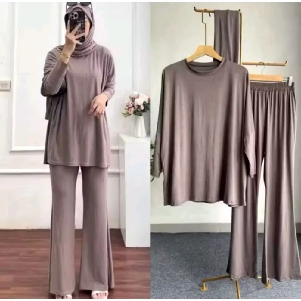 5. Everly Set Cutbray Free Hijab Pashmina/Setelan Celana dan Hijab Muslim/Basic Daily Set/Celana Panjang Cut Bray/Atasan Wanita Oversize