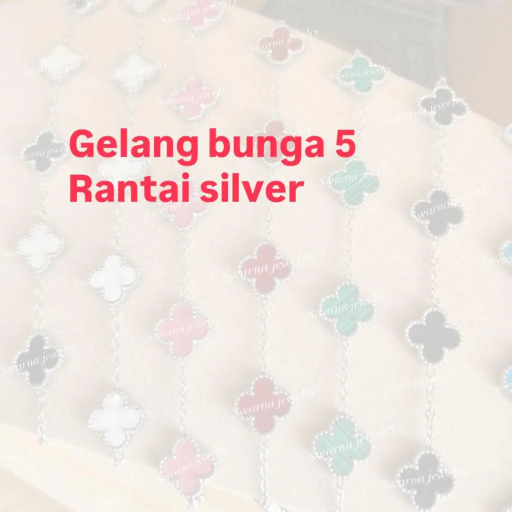 Swarna Jewelry Gelang Bunga lima rantai silver Fashion Wanita