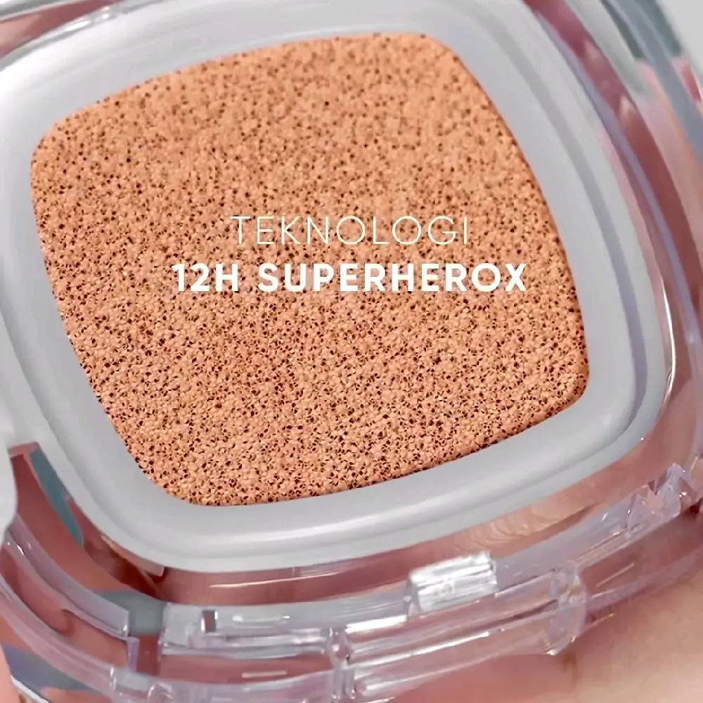 10H SuperHeroX gabungan dari 3 teknologi yang memberikan: Coverage tinggi, Glowing, tahan hingga 10 jam tanpa patchy, cakey, crack, atau creasing