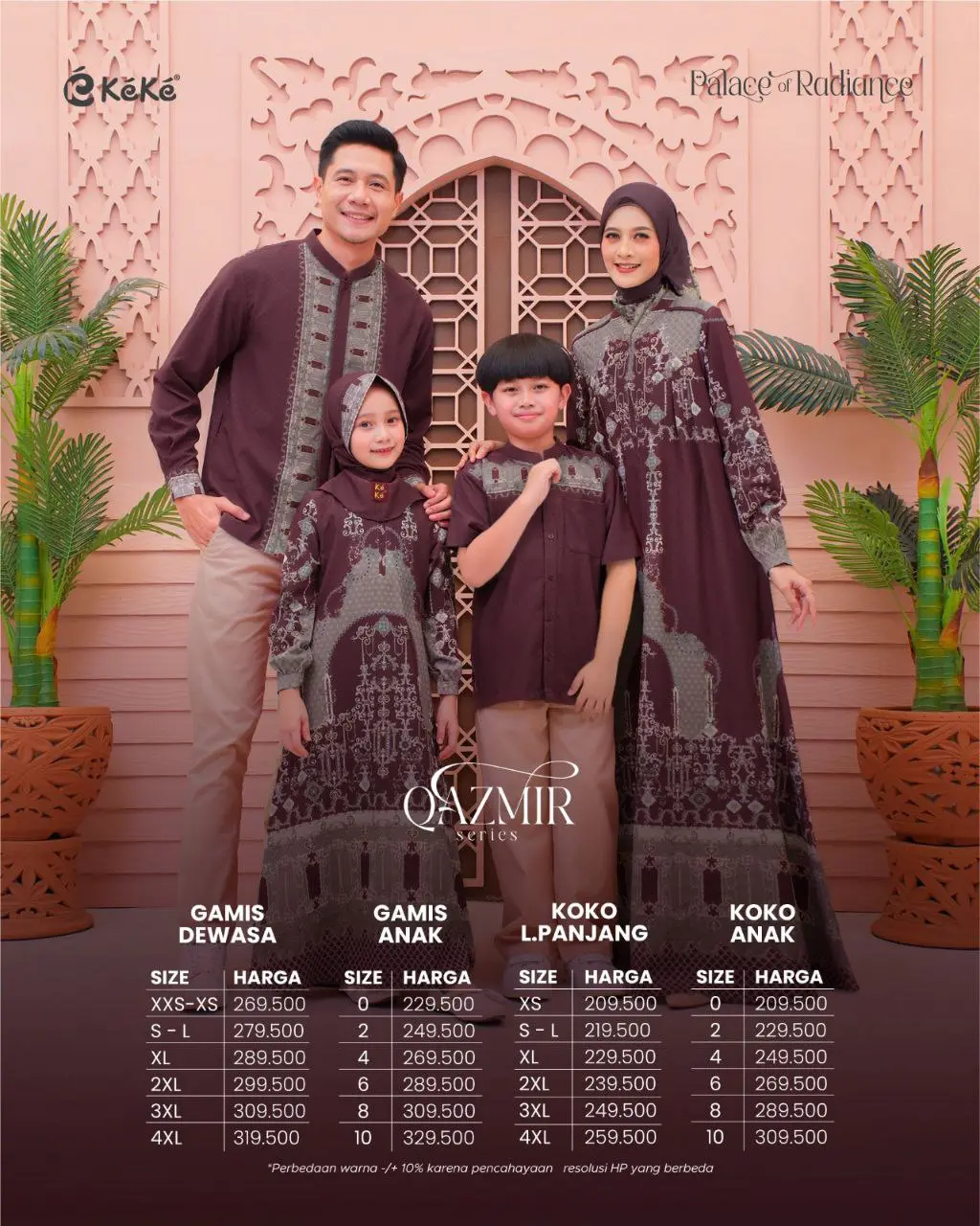 ✨ Sarimbit Keke Qazmir Series hadir dengan koleksi terbaru 2026. Tersedia dalam ukuran XS-XXXXL untuk dewasa dan 0-10 untuk anak. Bahan Alika, busui friendly dengan seleting depan. ADEM dan HALUS. Stok terbatas, mohon tanyakan sebelum order. 🌟