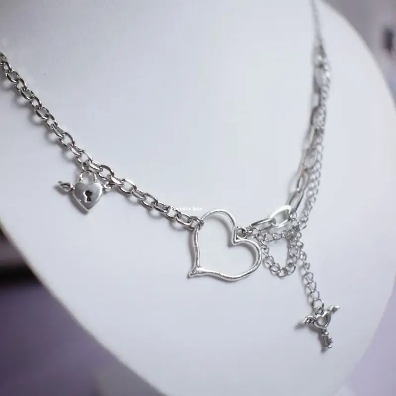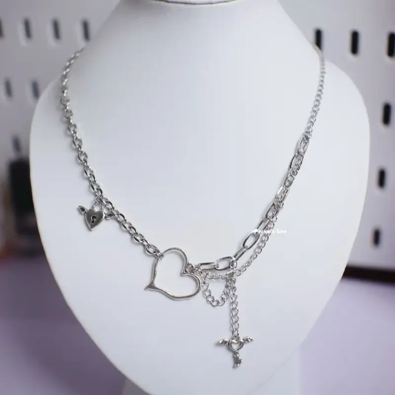 5. POCKETZ SIZE - Kalung Cantik dengan Desain Hati dan Rantai Logam untuk Tampilan Elegan