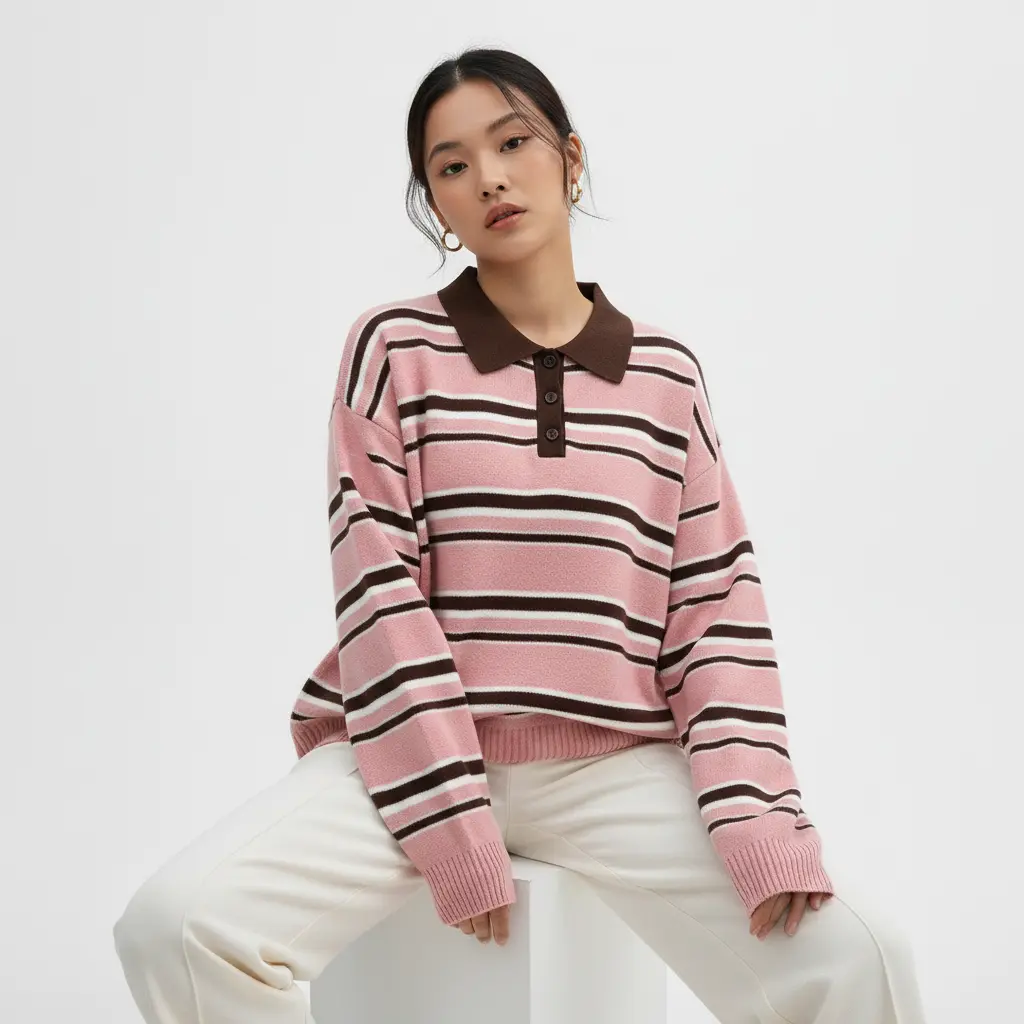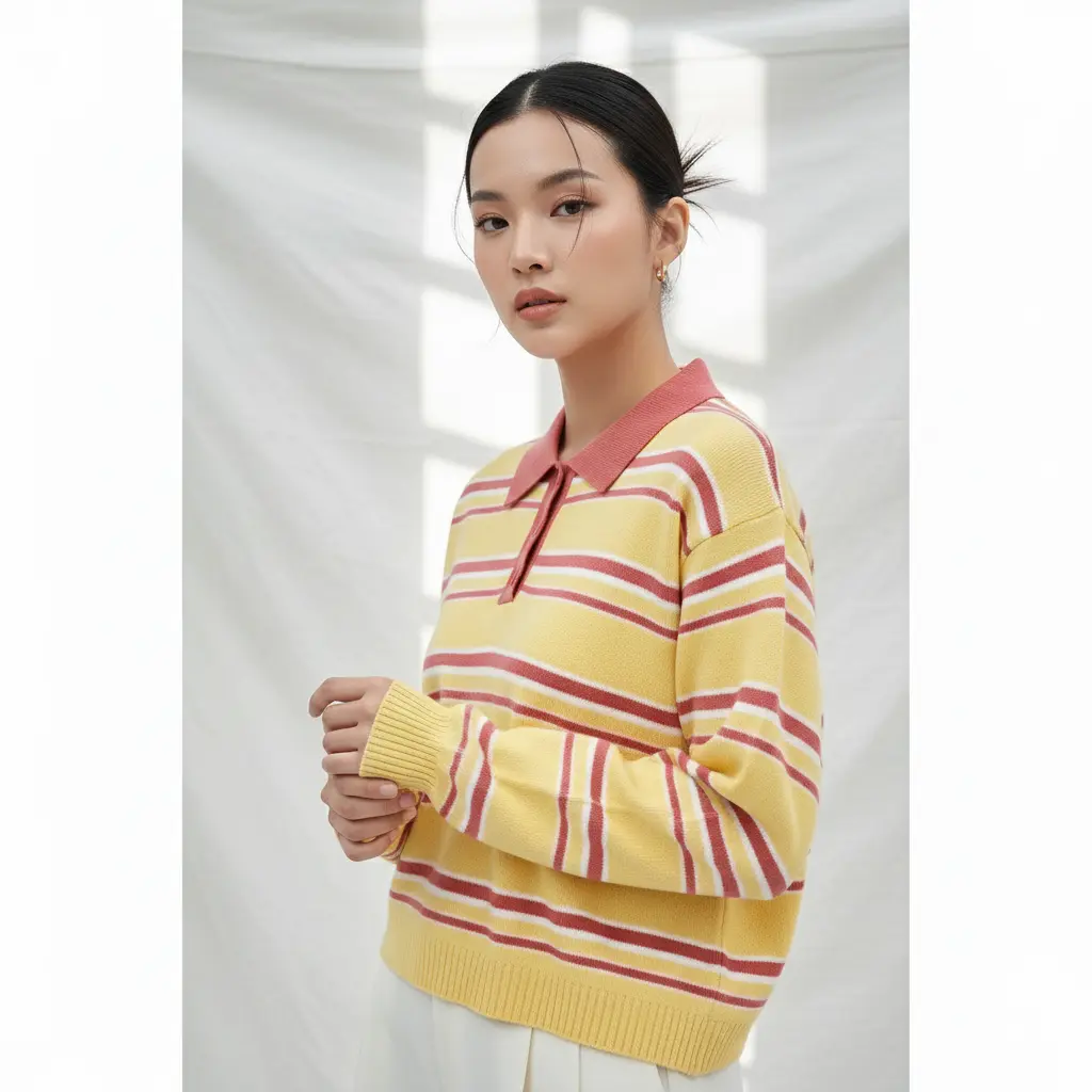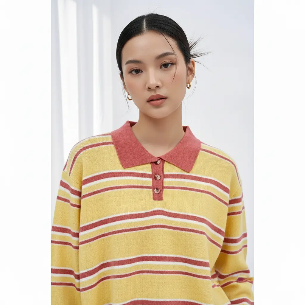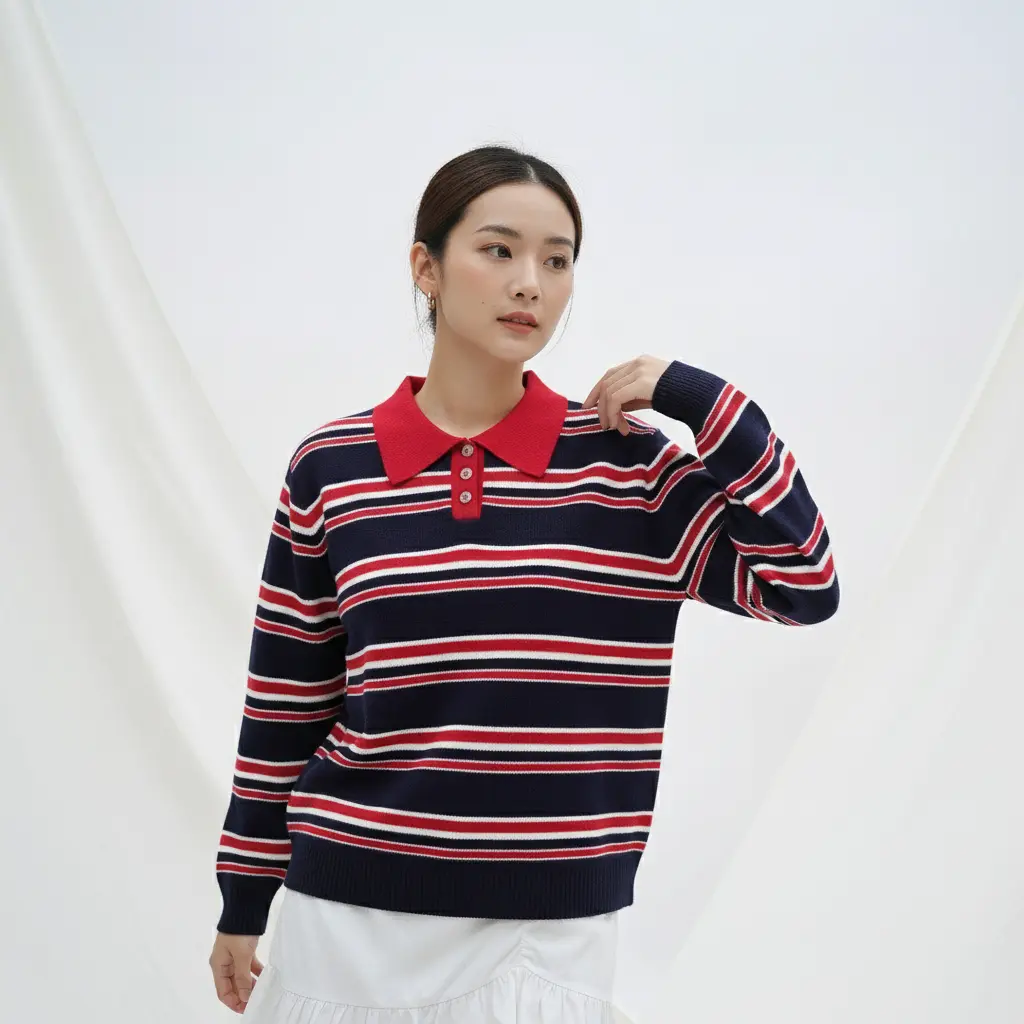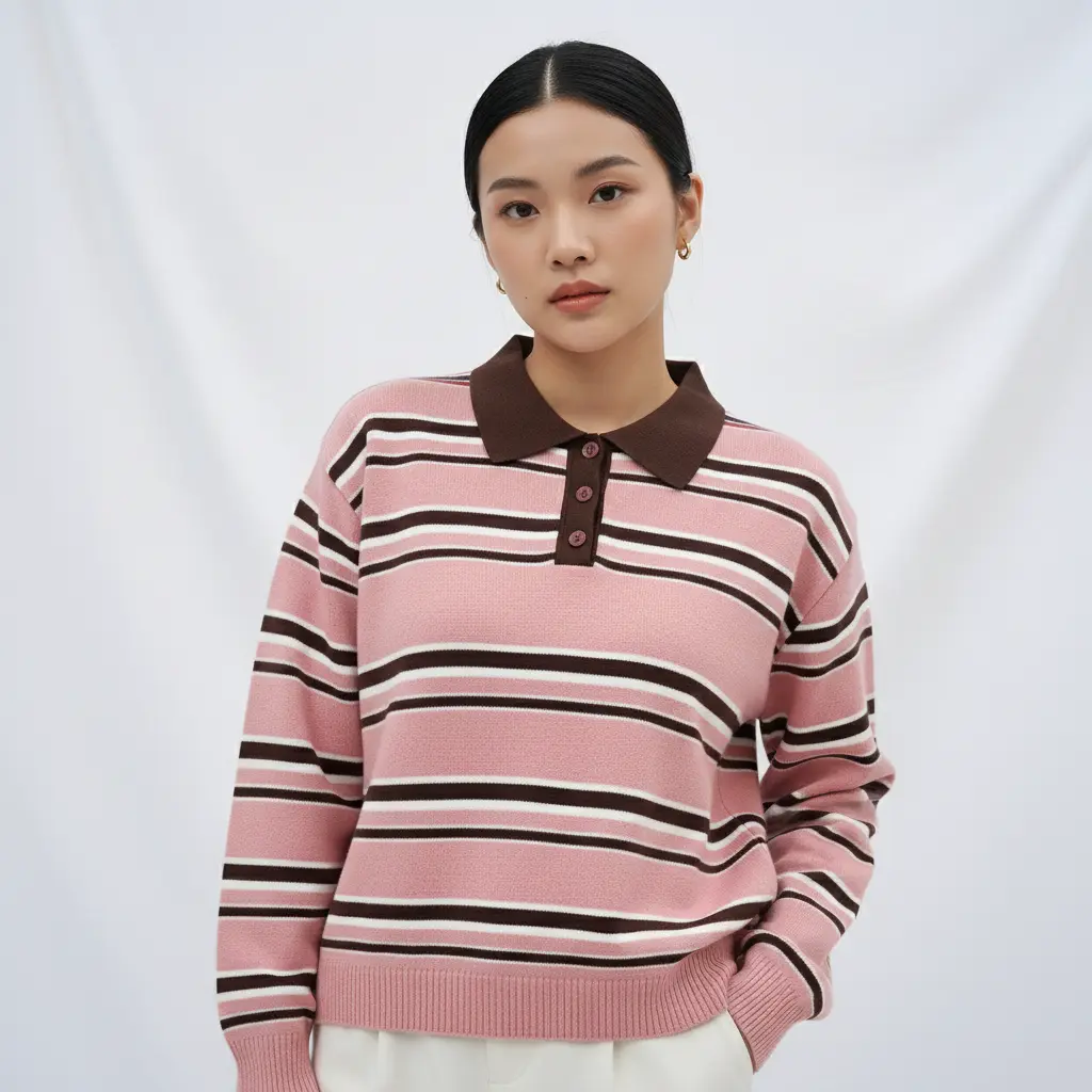 5. Blouse Rajut Berkerah Shadira Motif Garis Premium Desain Elegan Bahan Nyaman All Size Fit XL Cocok untuk Acara Kasual dan Semi-Formal