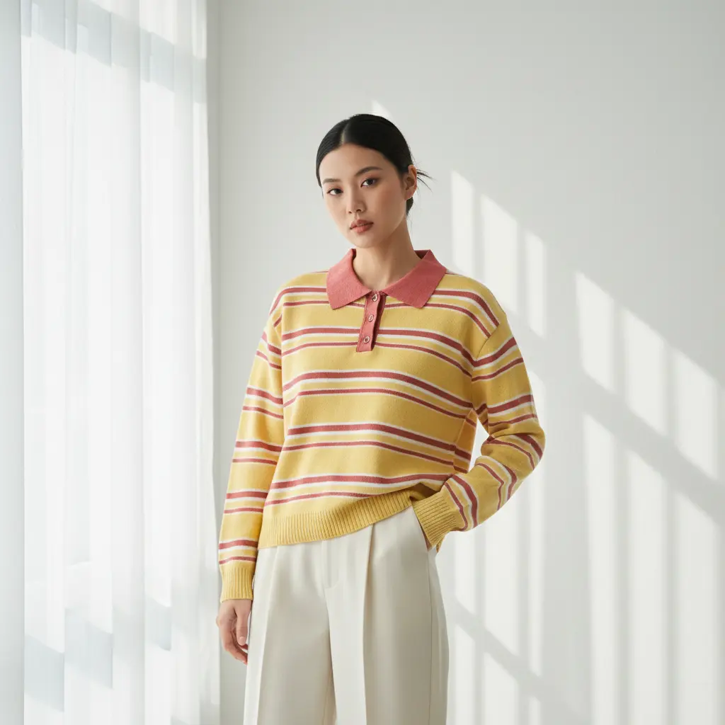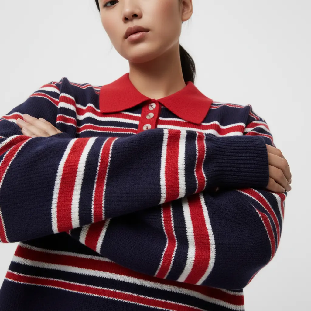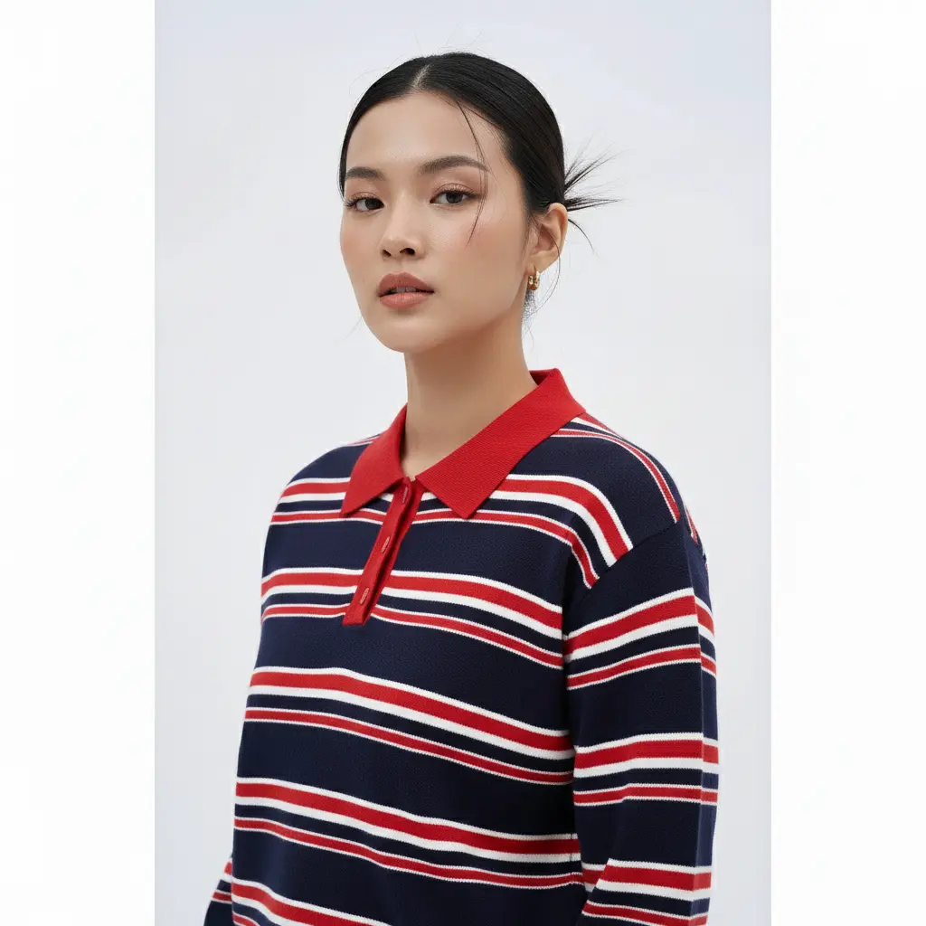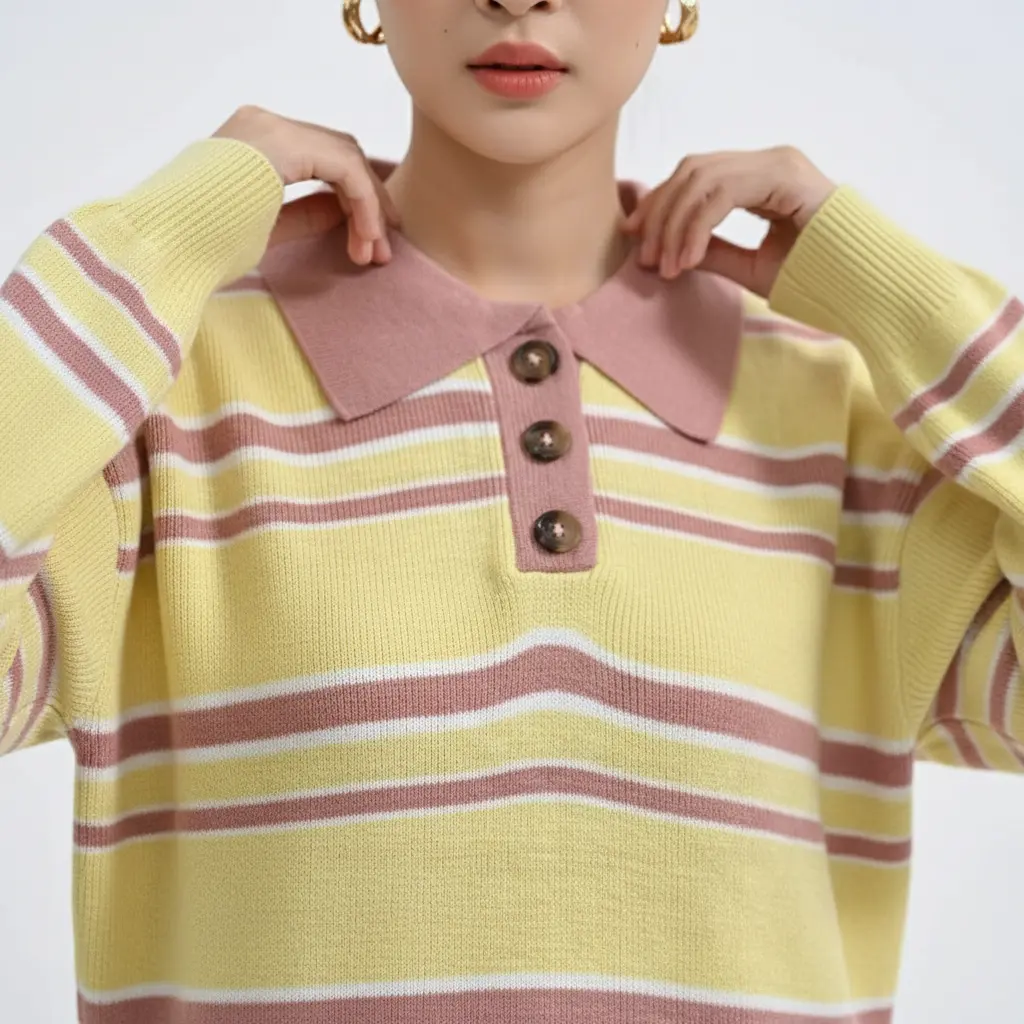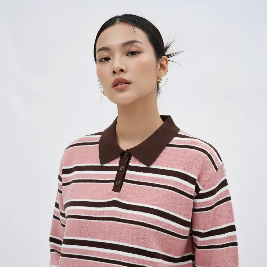 5. Blouse Rajut Berkerah Shadira Motif Garis Premium Desain Elegan Bahan Nyaman All Size Fit XL Cocok untuk Acara Kasual dan Semi-Formal