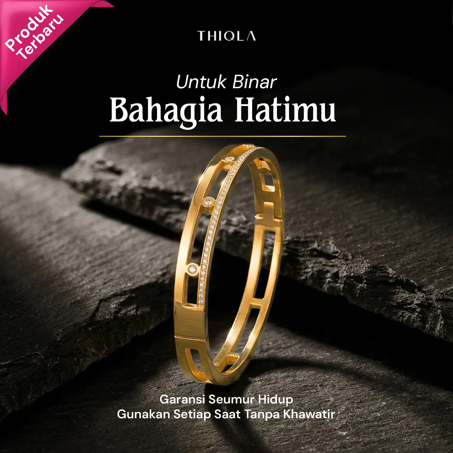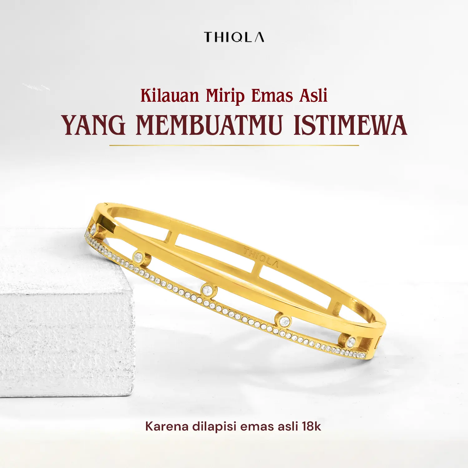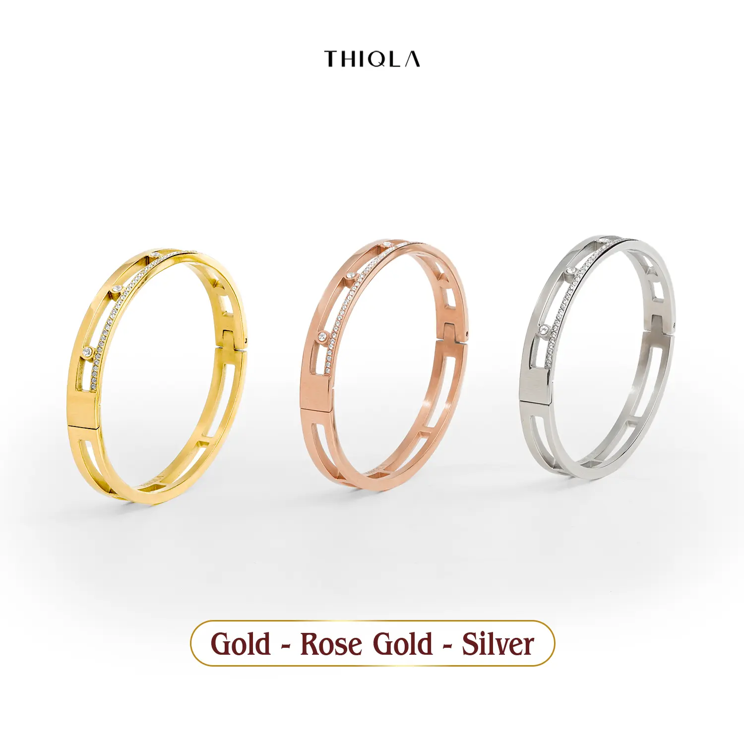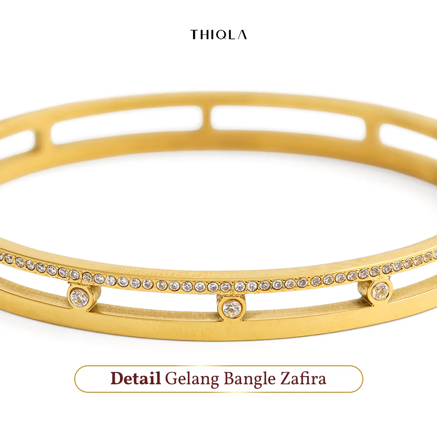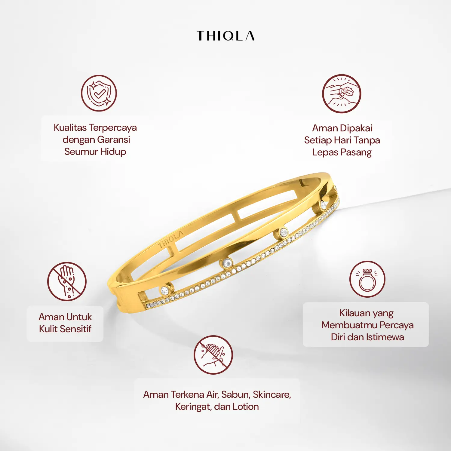 THIQLA menghadirkan bangle wanita eksklusif yang memadukan estetika modern dengan kemewahan abadi. Gelang bangle simpul ini dihiasi dengan kilauan crystal permata yang minimalis yang berkarakter, hingga gelang bangle permata dengan kilauan rhinestone dan diamond accent yang memukau. Dirancang menggunakan material Stainless Steel premium, koleksi bangle anti karat ini menawarkan kualitas gelang bangle mirip emas yang sangat awet, tahan lama, dan tidak mudah pudar. Lengkapi gaya personal Anda dengan pilihan gelang paperclip elegan, desain gelang carti yang populer, hingga bangle crystal dari seri Bangle Thiqla Ori yang memberikan sentuhan glamour pada pergelangan tangan Anda. Setiap detail gelang bangle ini dibuat dengan standar tinggi untuk memastikan agar Bangle awet anti karat dan kenyamanan pada kulit sensitif serta memberikan kesan Bangle berkilau sempurna guna menyempurnakan penampilan harian maupun momen spesial Anda.