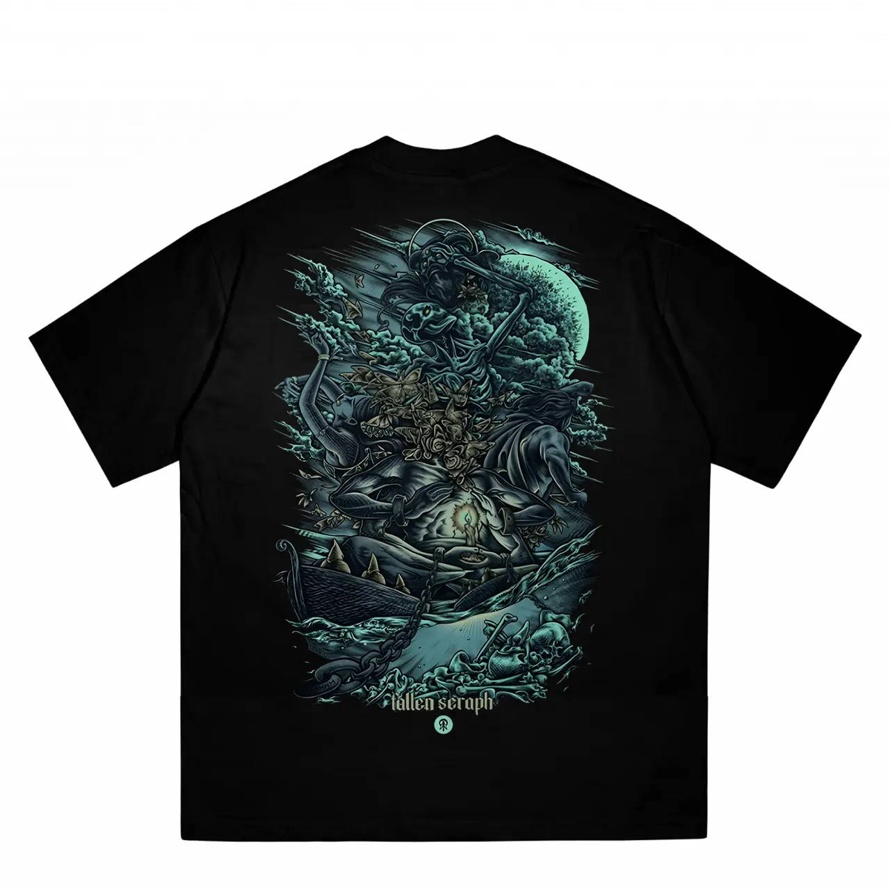 (COD) Motif Tengkorak yang Artistik dengan Nuansa Biru-Hijau yang Misterius, Dikelilingi Awan dan Gelombang. Cocok untuk Tampilan yang Penuh Karakter dan Berani Berbeda.     l Nyaman Dipakai & Siap COD