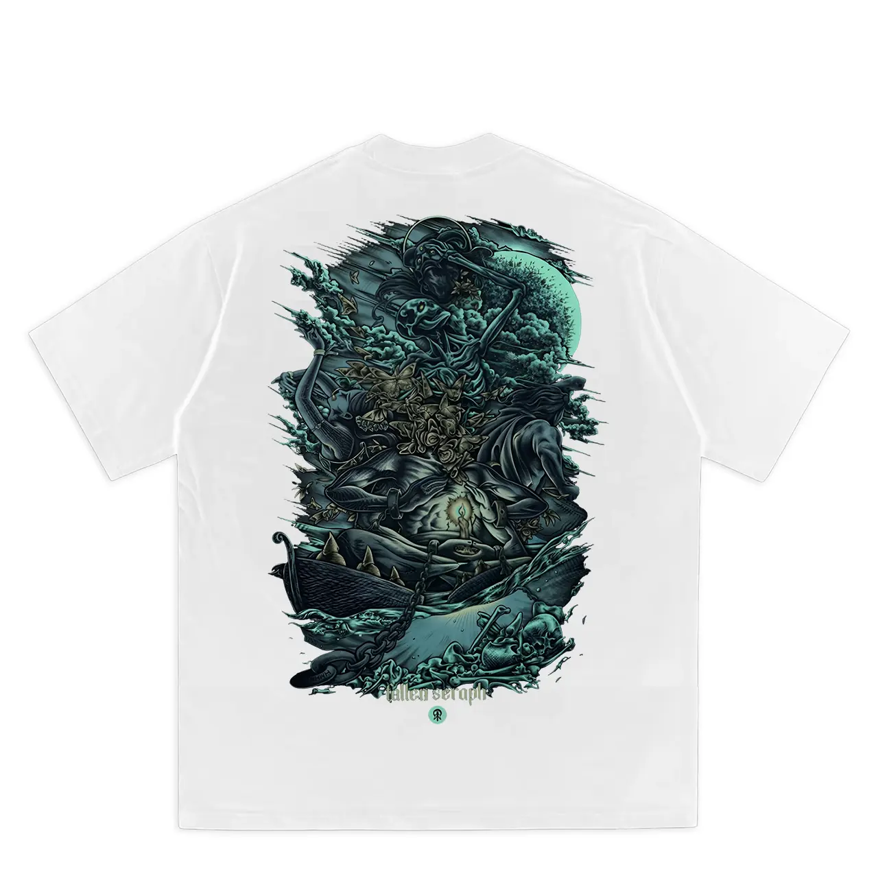 5. (COD) Motif Tengkorak yang Artistik dengan Nuansa Biru-Hijau yang Misterius, Dikelilingi Awan dan Gelombang. Cocok untuk Tampilan yang Penuh Karakter dan Berani Berbeda. l Nyaman Dipakai & Siap COD