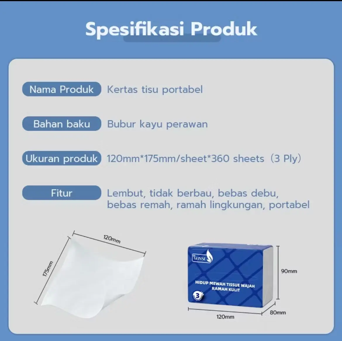 Ukuran Tissue :120mmX175mm