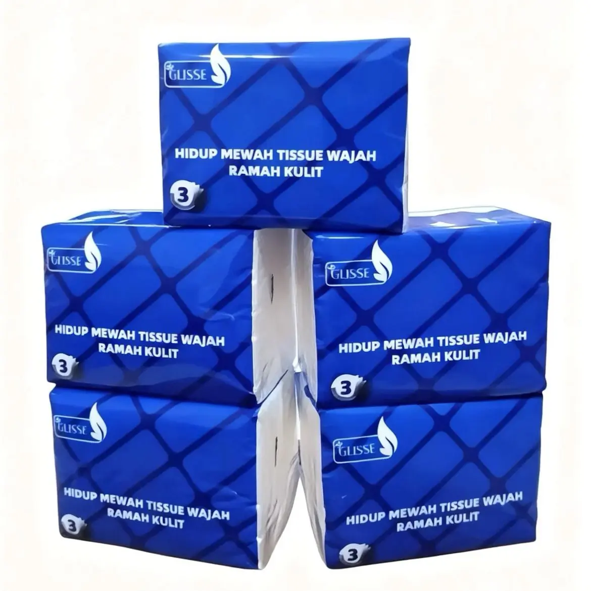 Kemasan Baru Glisse tissue wajah terbuat dari 100% serat alami ( virgin plantation pulp)