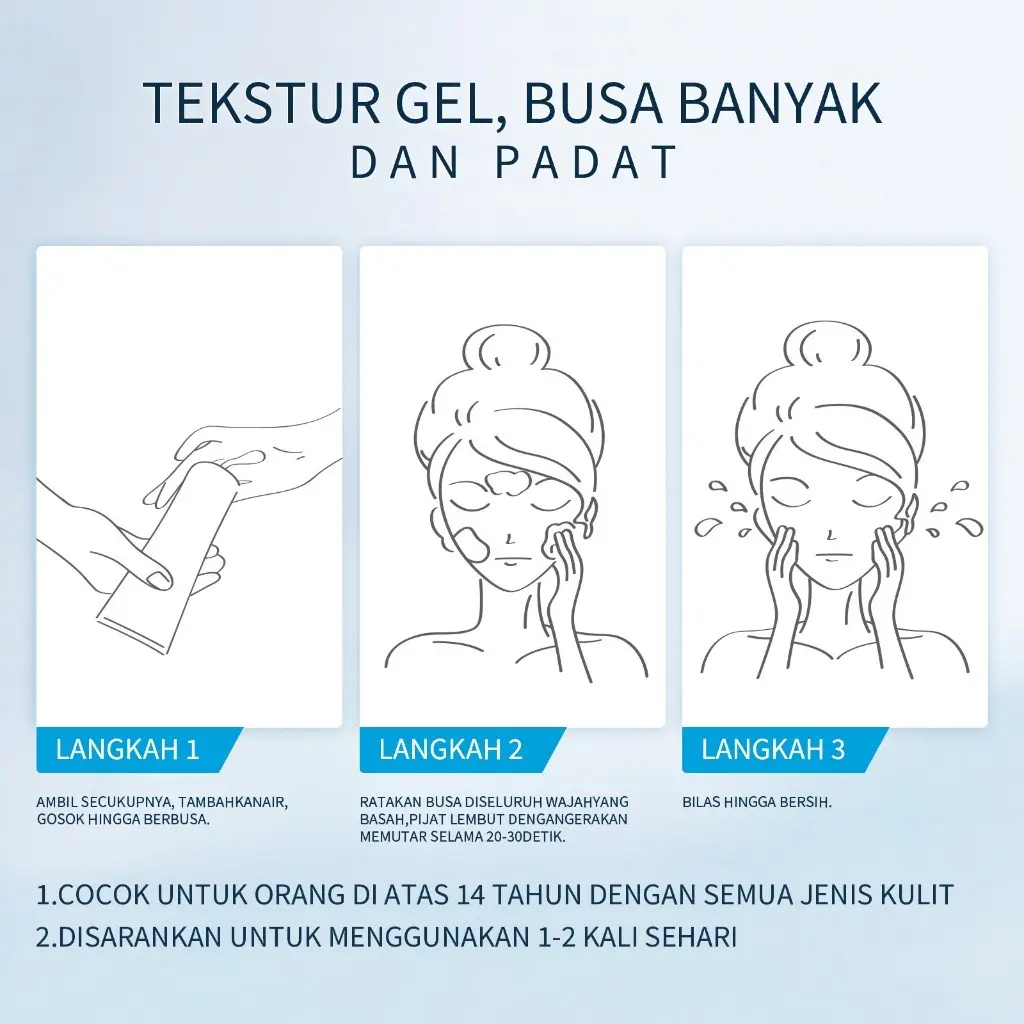 1. Ambil produk secukupnya, Gosok hingga berbusa, Ratakan keseluruh wajah