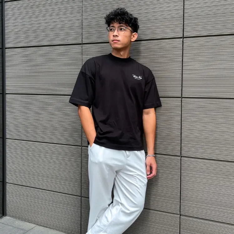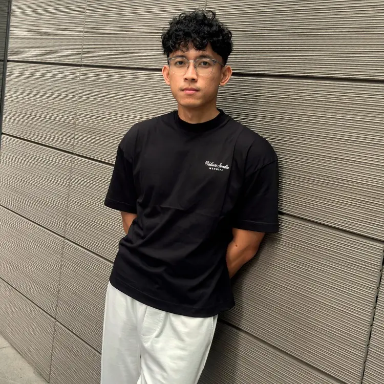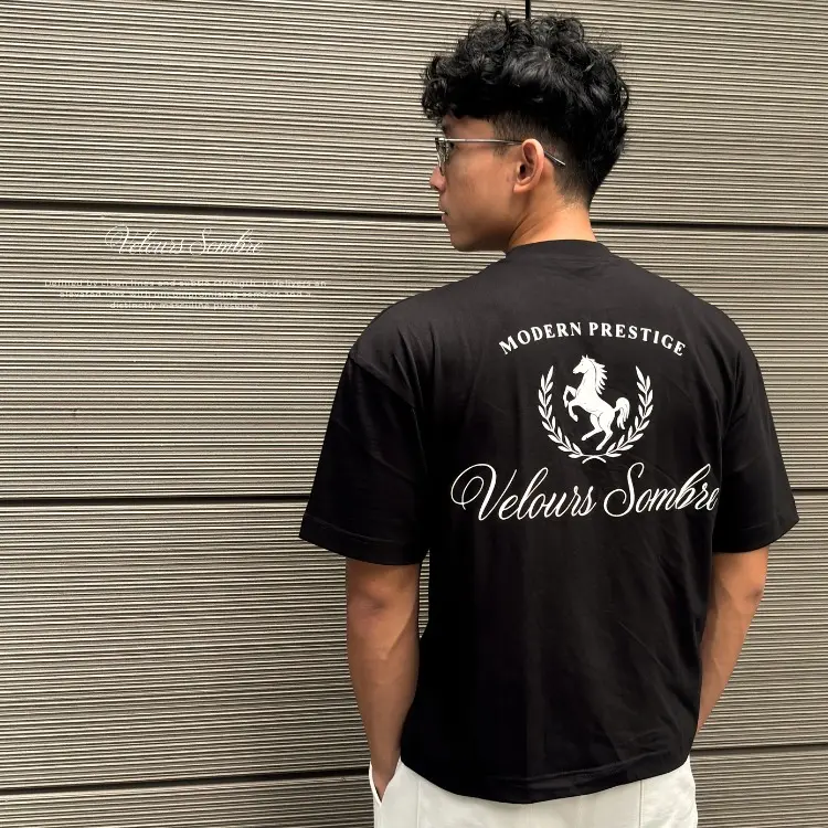 Dengan potongan boxy yang modern dan nyaman, kaos ini memberikan ruang gerak lebih bebas tanpa menghilangkan kesan mewah. Cocok untuk dipakai sehari-hari maupun untuk tampil lebih stylish.