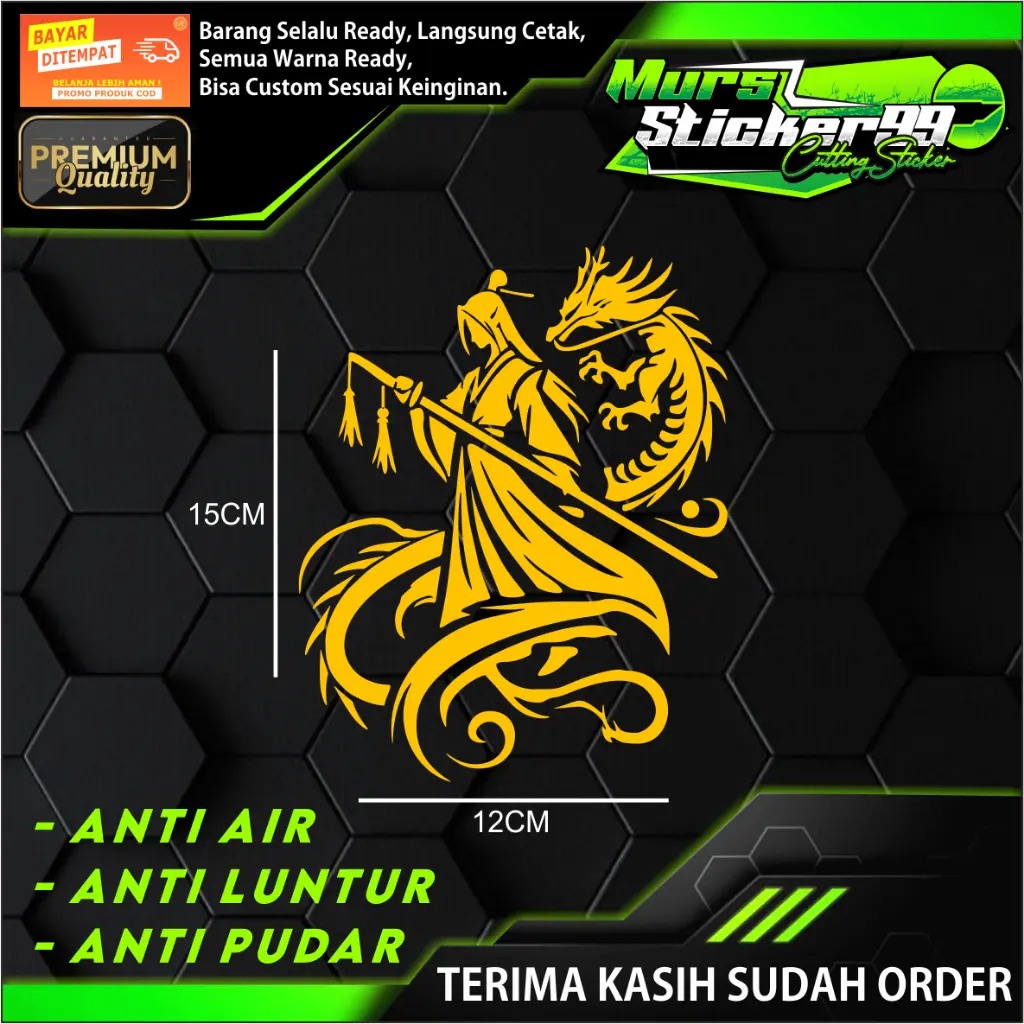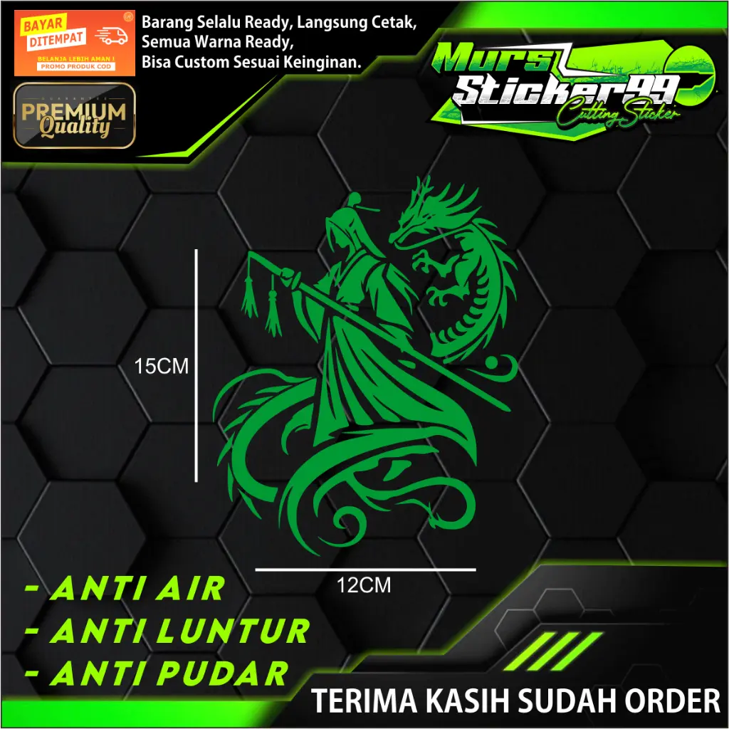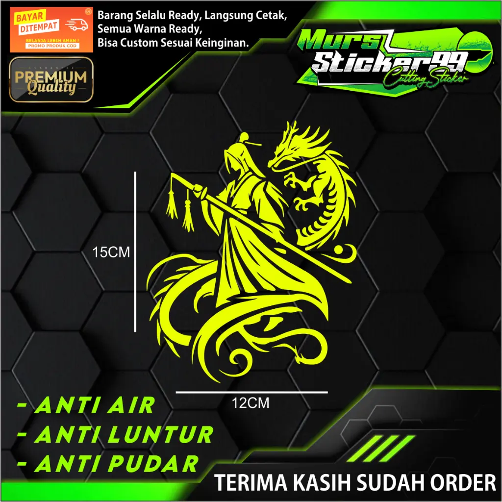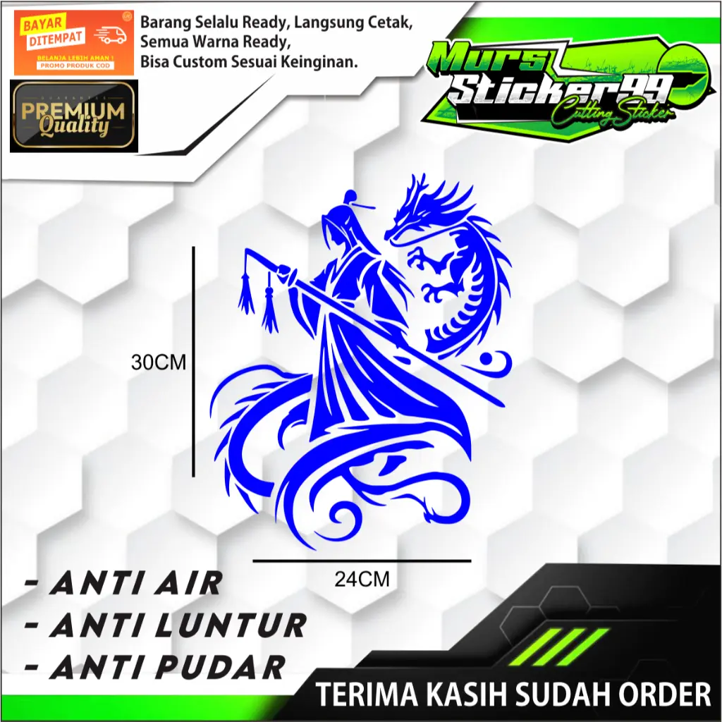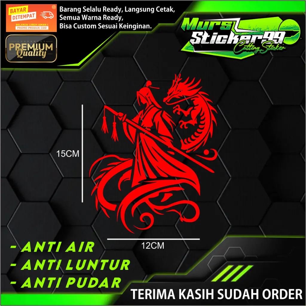- Tidak gampang luntur atau pudar meskipun terkena air atau panas saat di tempel di motor atau mobil