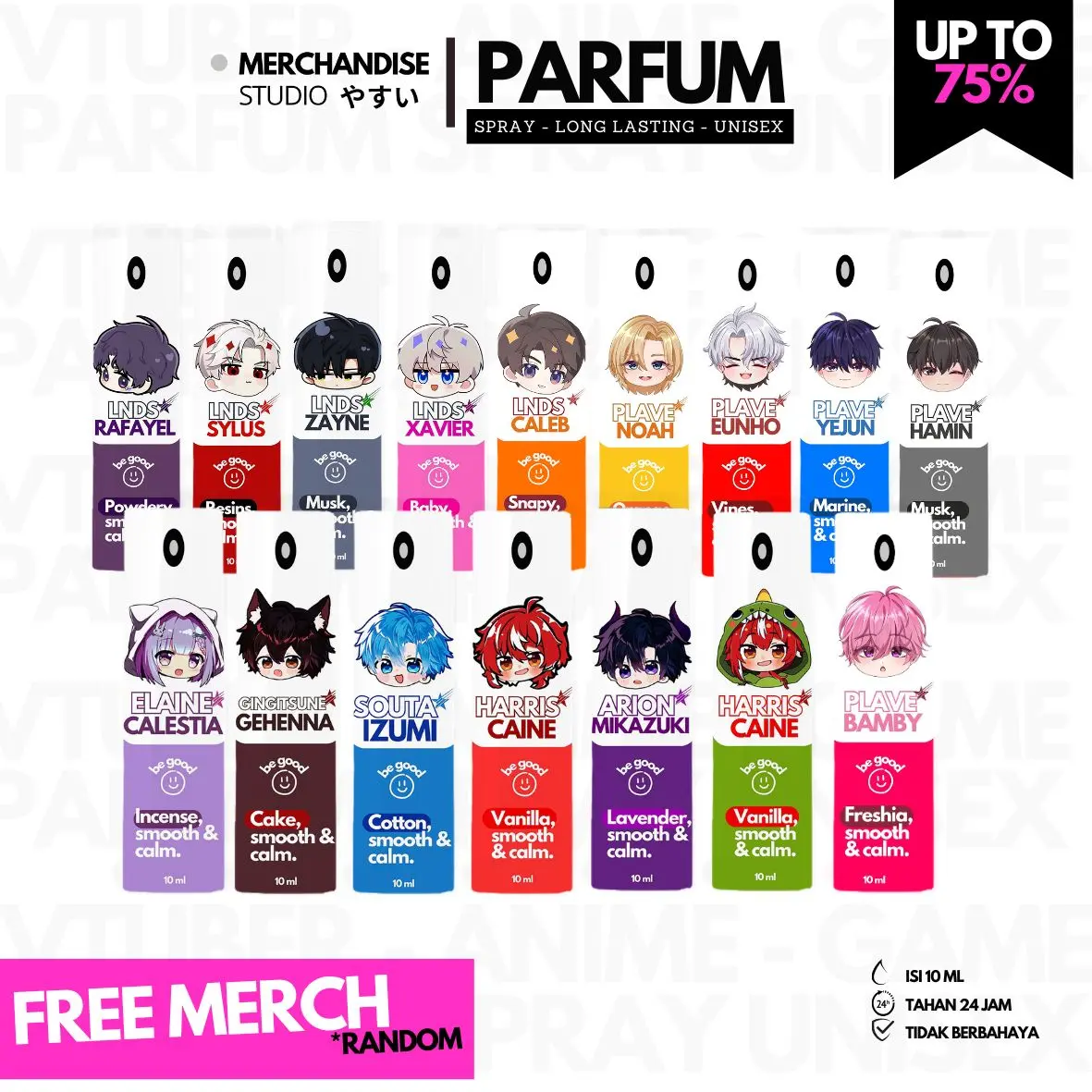 Wanginya enak, yang souta manis ga terlalu manis gitu terus ada wangi wangi bunga, kalau harris kayak wangi cowok cowok yang gimana gitu