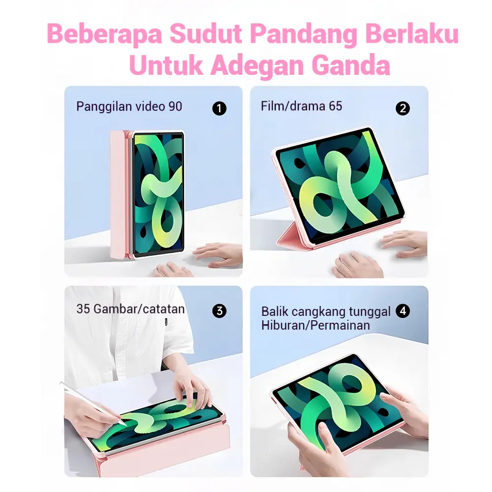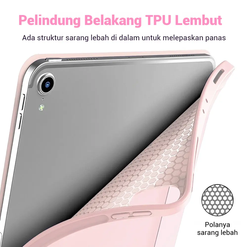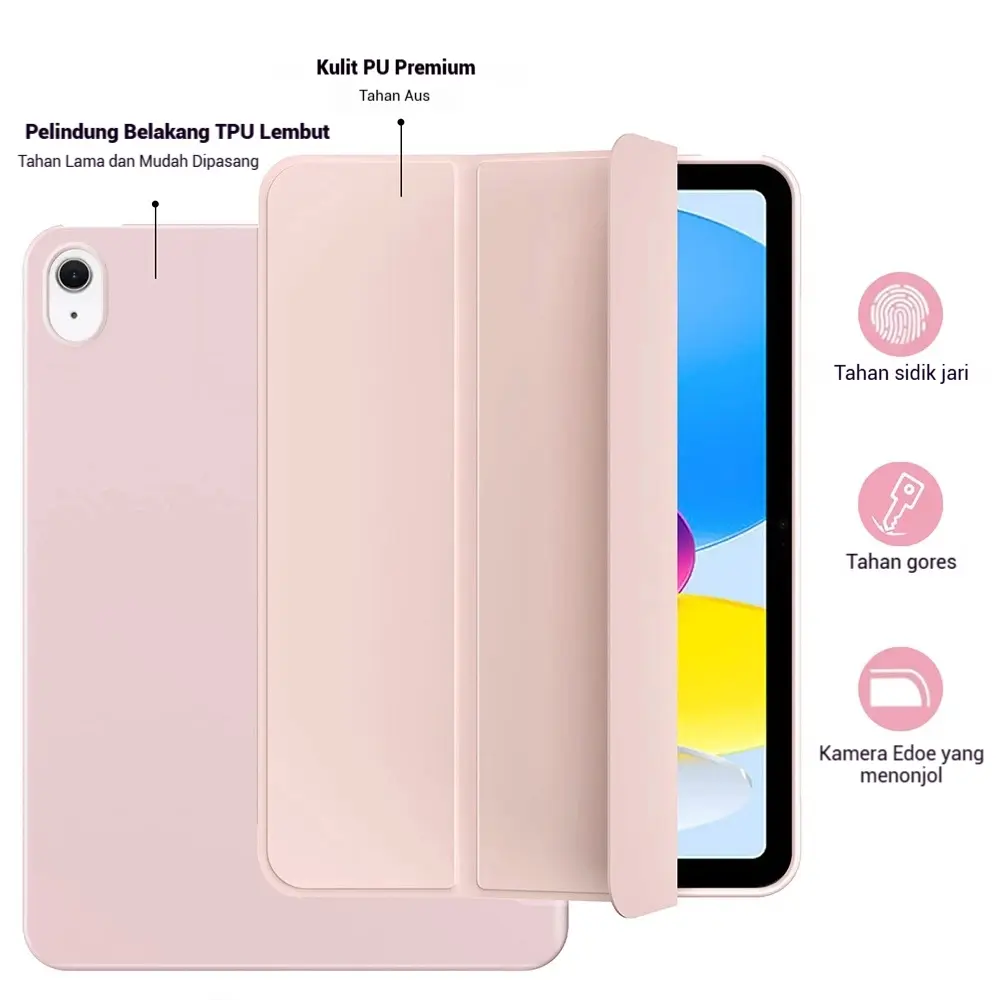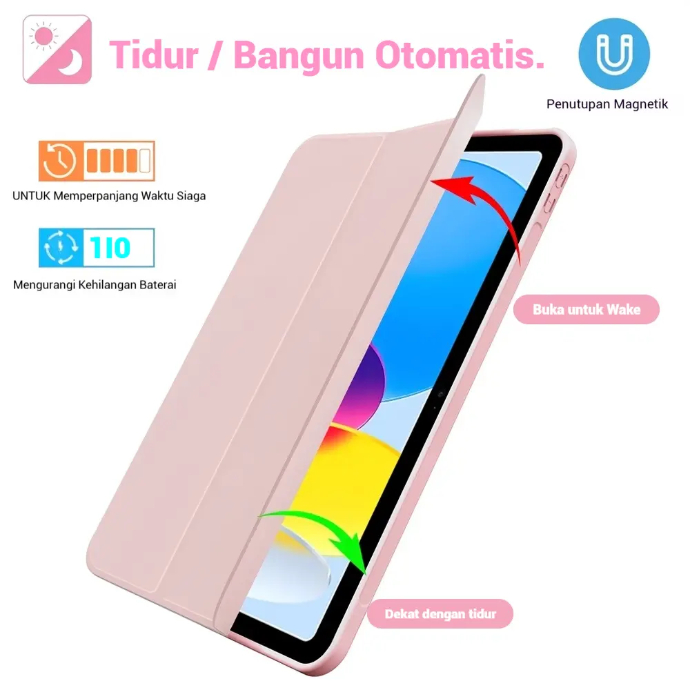 Cover ini menawarkan perlindungan layar maksimal sekaligus fitur pintar yang membuat iPad otomatis sleep/wake saat cover dibuka atau ditutup.